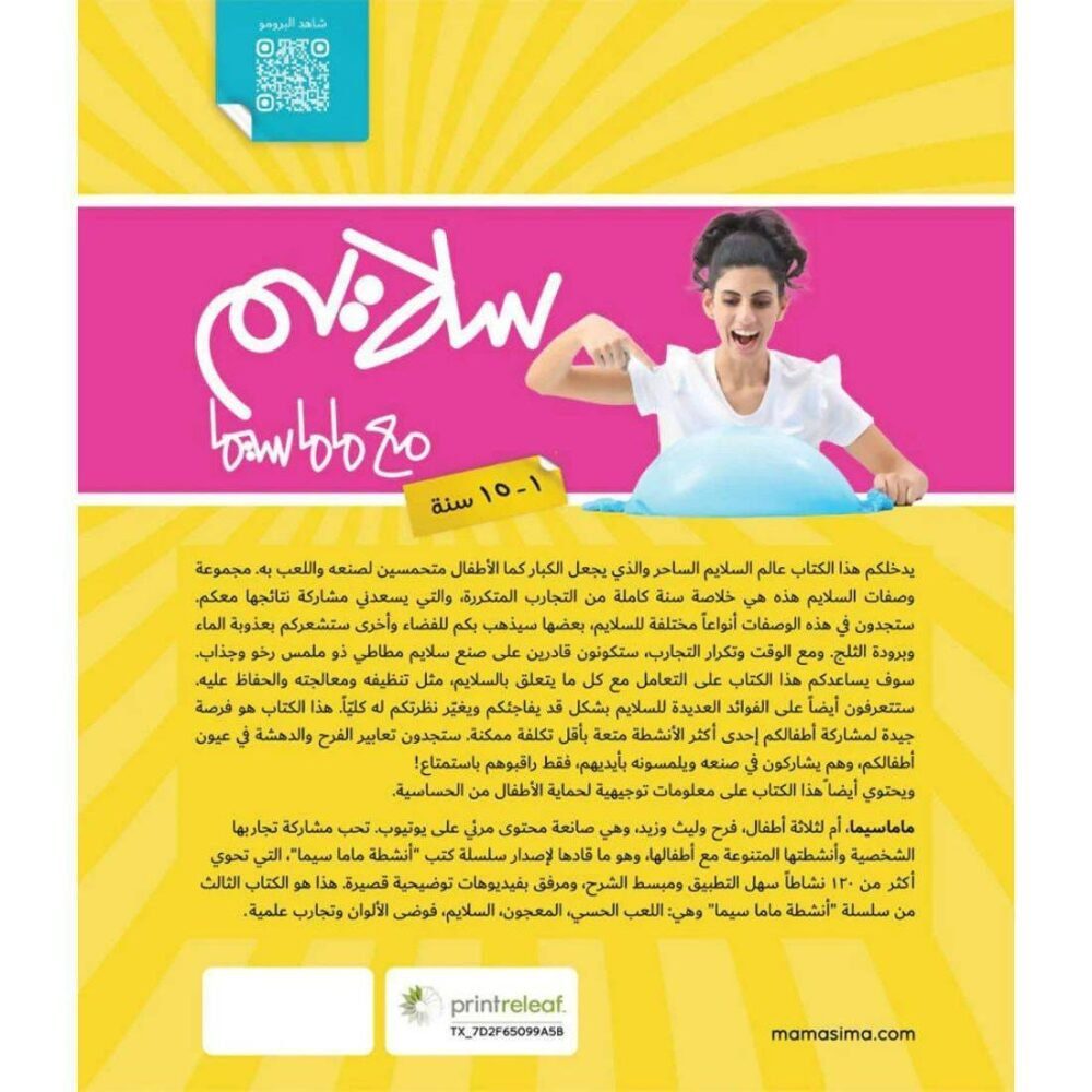 يدخلكم هذا الكتاب عالم السلايم الساحر والذي يجعل الكبار كما الأطفال متحمسين لصنعه واللعب به. مجموعة وصفات السلايم هذه هي خلاصة سنة كاملة من التجارب المتكررة، والتي يسعدني مشاركة نتائجها معكم. ستجدون في هذه الوصفات أنواعاً مختلفة للسلايم، بعضها سيذهب بكم للفضاء وأخرى ستشعركم بعذوبة الماء وبرودة الثلج. ومع الوقت وتكرار التجارب، ستكونون قادرين على صنع سلايم مطاطي ذو ملمس رخو وجذاب. سوف يساعدكم هذا الكتاب على التعامل مع كل ما يتعلق بالسلايم، مثل تنظيفه ومعالجته والحفاظ عليه. ستتعرفون أيضاً على الفوائد العديدة للسلايم بشكل قد يفاجئكم ويغيّر نظرتكم له كليّاً. هذا الكتاب هو فرصة جيدة لمشاركة أطفالكم إحدى أكثر الأنشطة متعة بأقل تكلفة ممكنة. ستجدون تعابير الفرح والدهشة في عيون أطفالكم، وهم يشاركون في صنعه ويلمسونه بأيديهم، فقط راقبوهم باستمتاع!