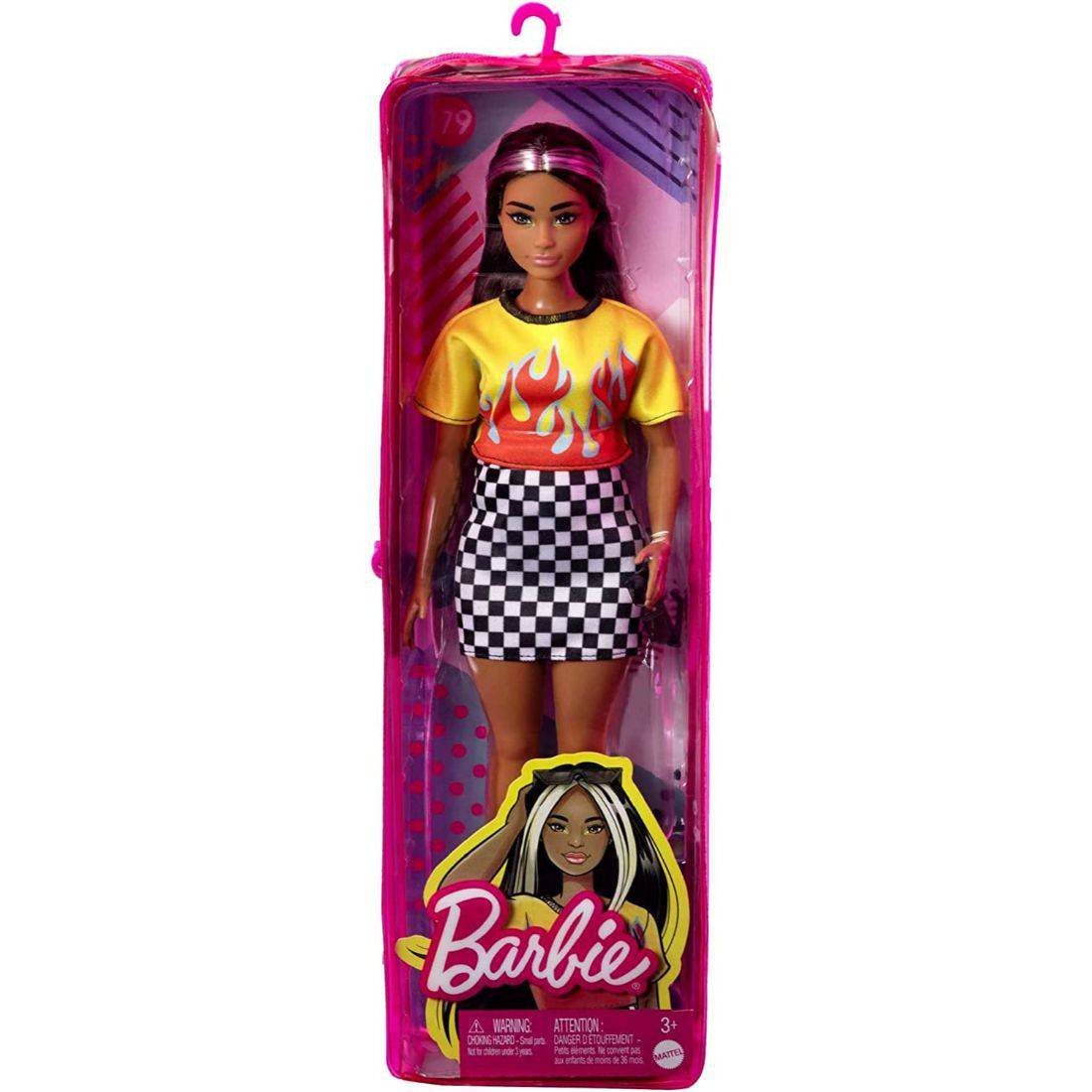 Barbie Long Highlighted Hair Fashionistas Curvy Doll with Flame Crop Top