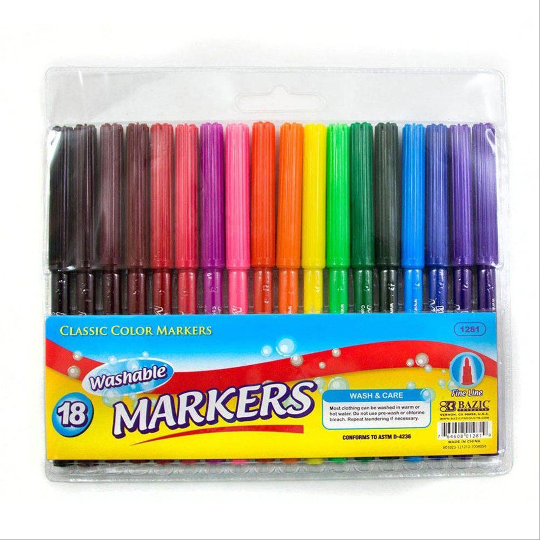 BAZIC 18 Fine Line Washable Watercolor Markers.