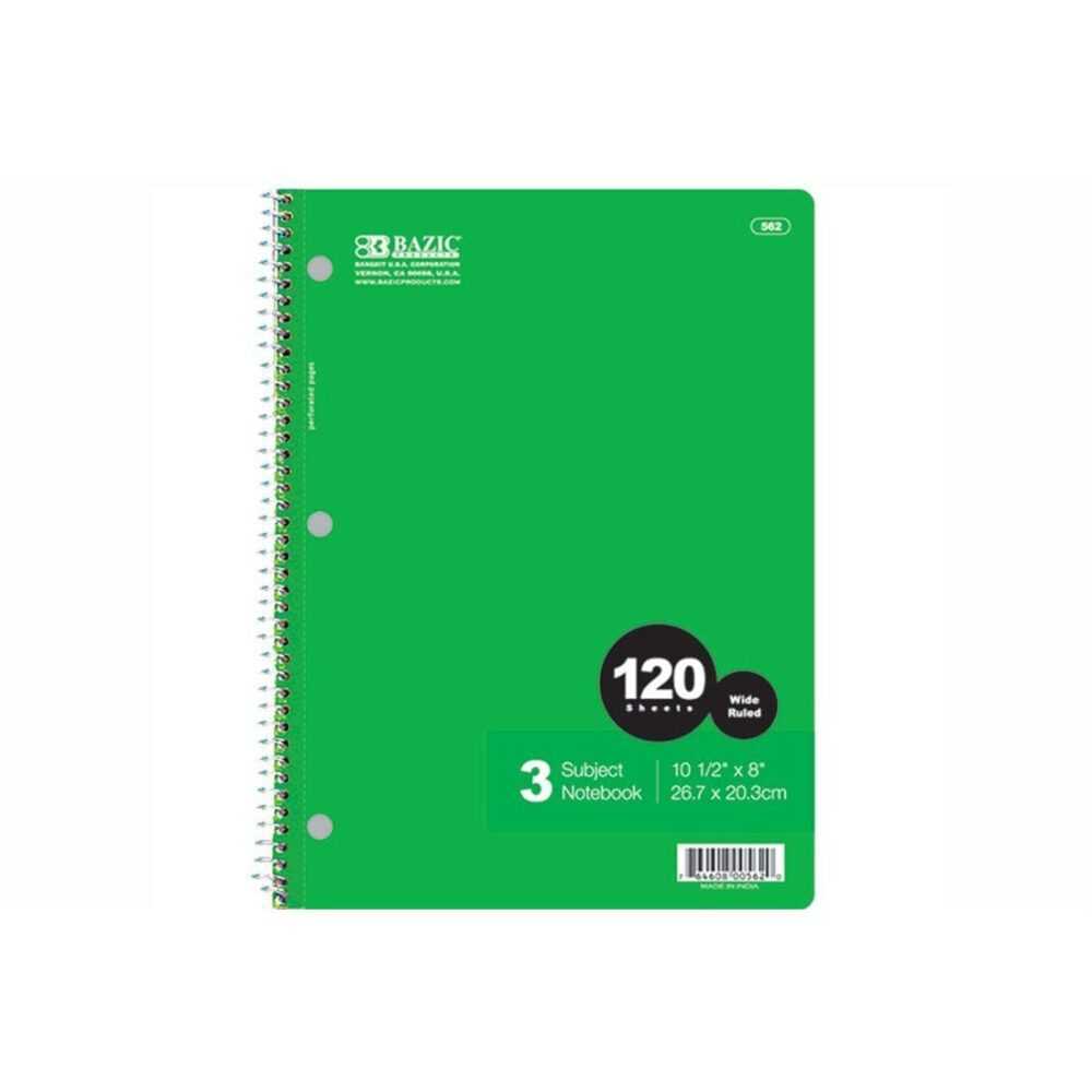 BAZIC Assorted Wide Ruled 3 Subject Spiral Notebook