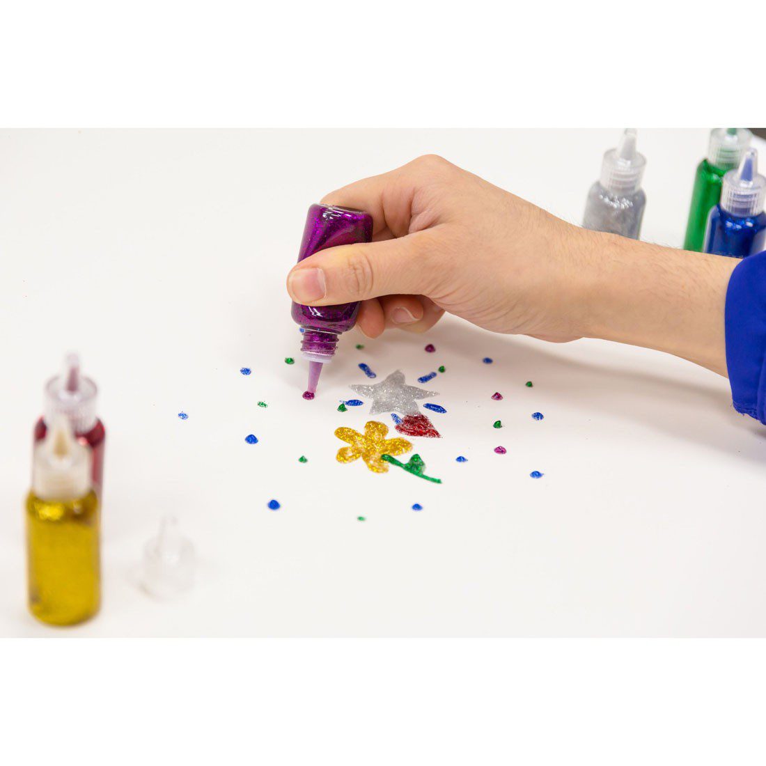 Fine glitter is mixed in the glue.