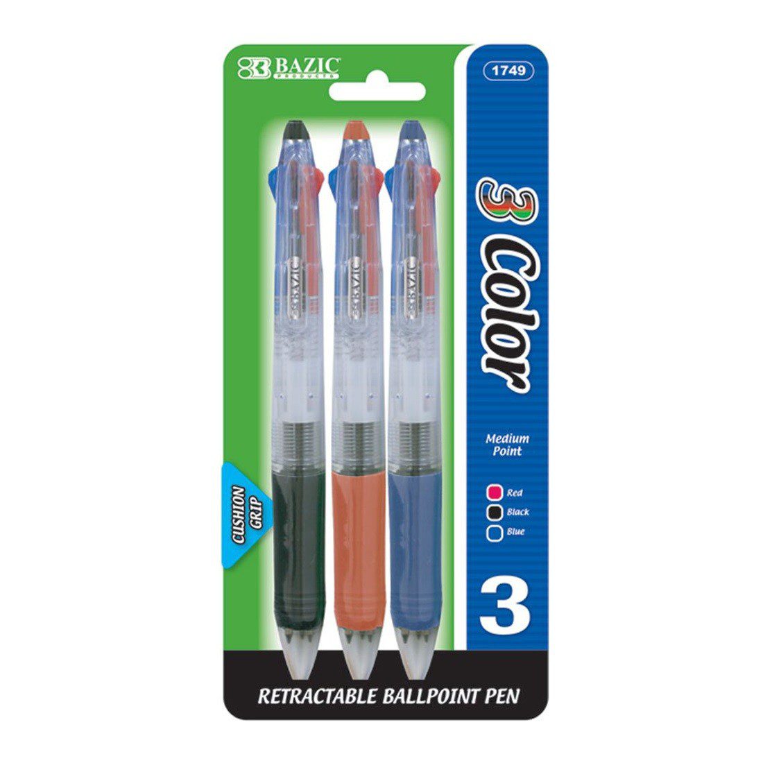 BAZIC 3-Color Pen with Cushion Grip – 3 Per Pack