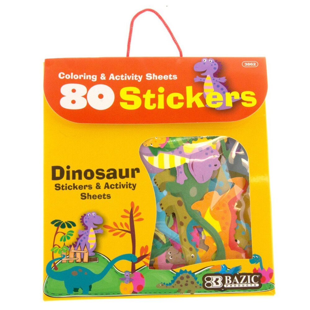 Go wild with this book brimming with dinosaur-themed stickers. Children can use the stickers to complete the colorful scenes, or to add to their own creations. The big, friendly stickers are easy for little hands to handle, and children can have fun adding stickers to the scenes in whatever combination they like to create the perfect picture. 80 Stickers Per Bag.