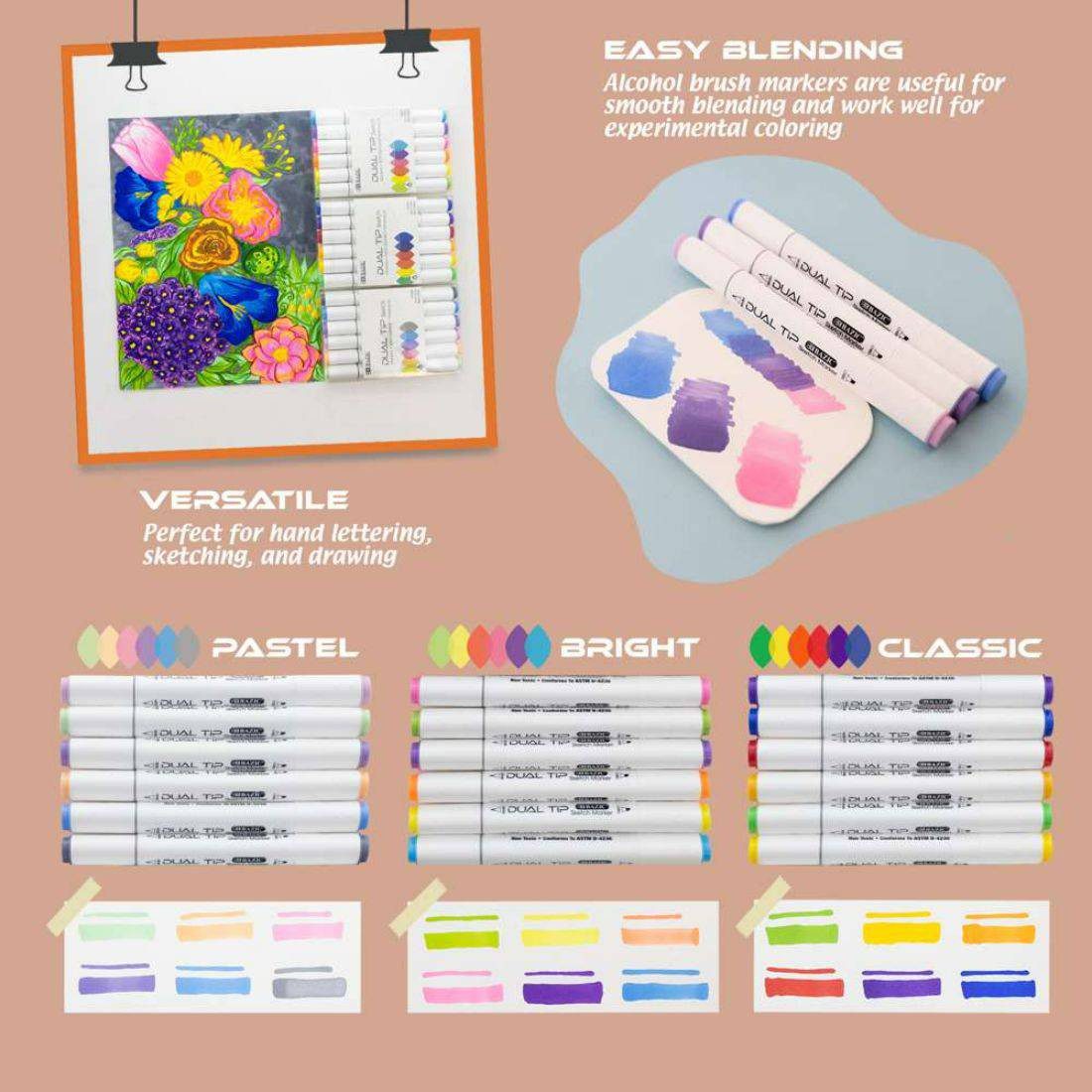 EASY BLENDING. Alcohol brush markers are more durable and do not fray easily. *NOTE: Alcohol Based Markers like ALL other brand alcohol markers, will Bleed through regular coloring paper, except very thick paper.