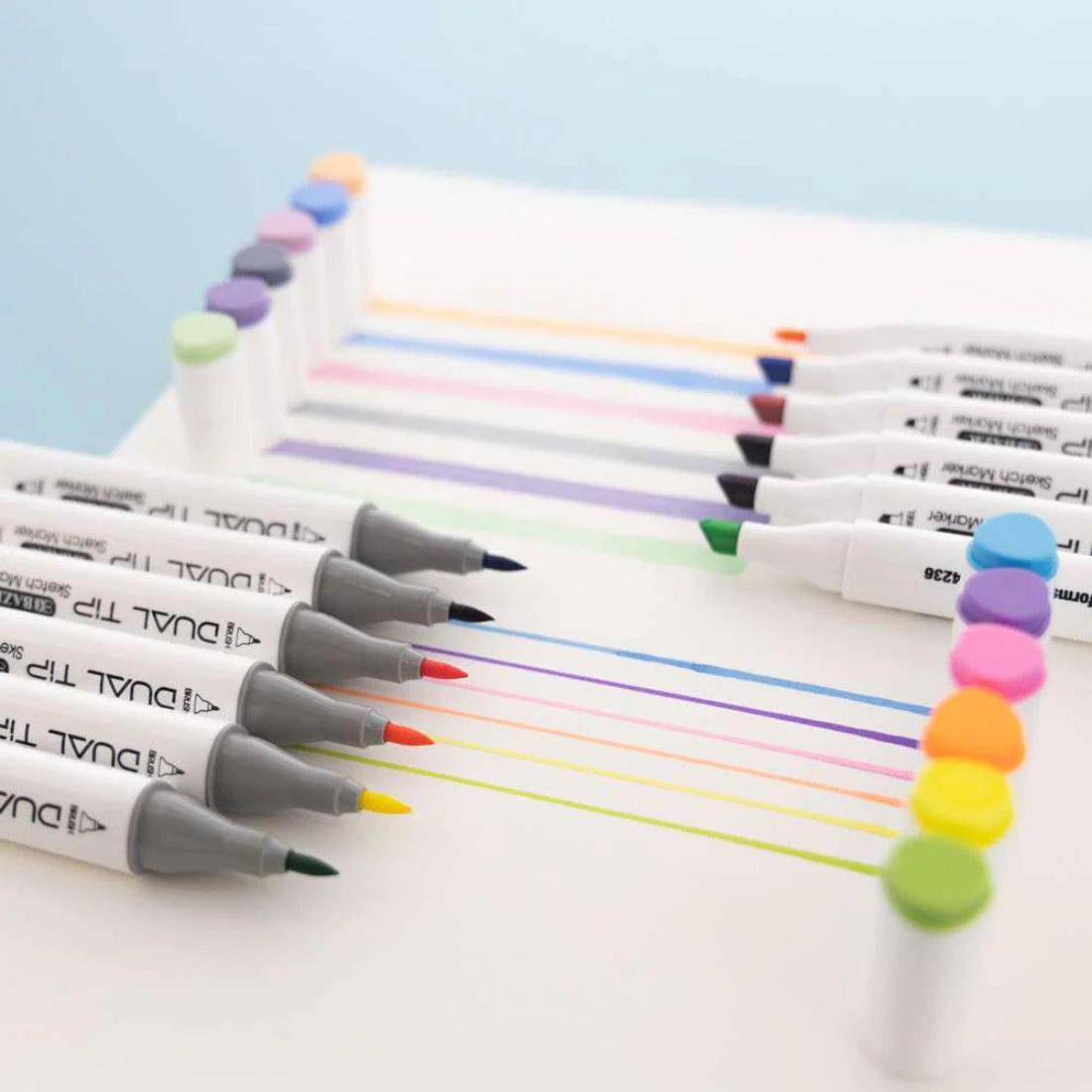 BAZIC Dual Tip Sketch Markers Fluorescent Colors Chisel & Brush – Pack of 6