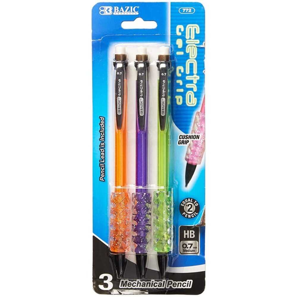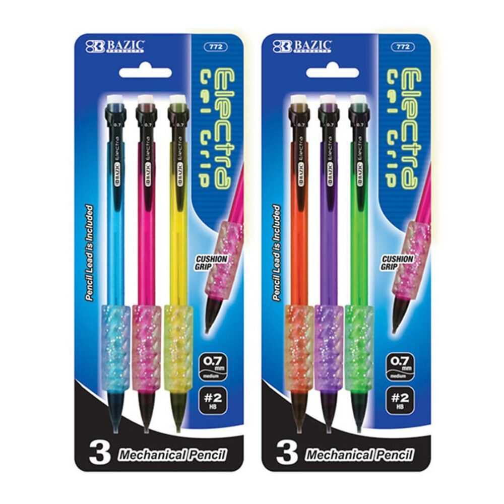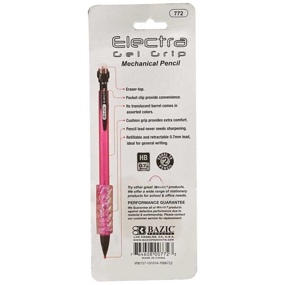 BAZIC Electra 0, 7 mm Mechanical Pencil Eraser-top, Pocket clip provide convenience, Its translucent barrel comes in assorted colors, Pencil lead never needs sharpening, Refillable and retractable 0, 7 mm lead, ideal for general writing.