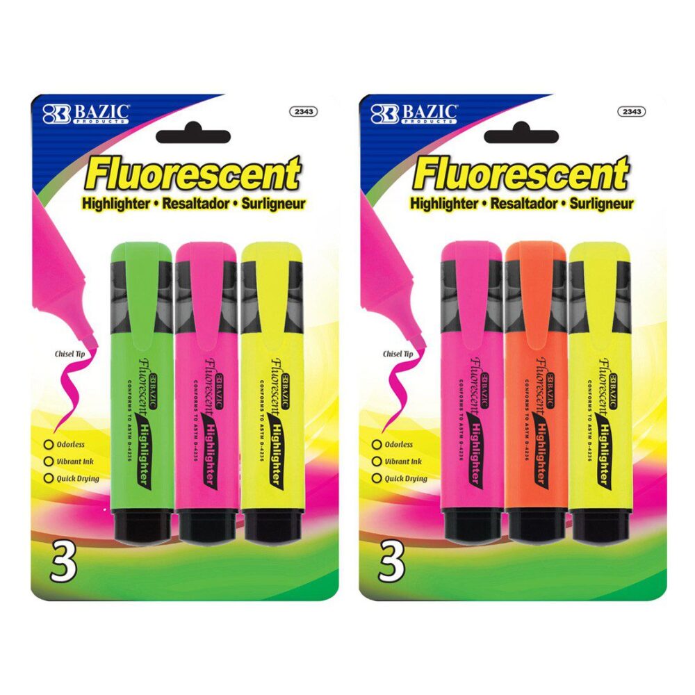 BAZIC Fluorescent Highlighters with Pocket Clip
