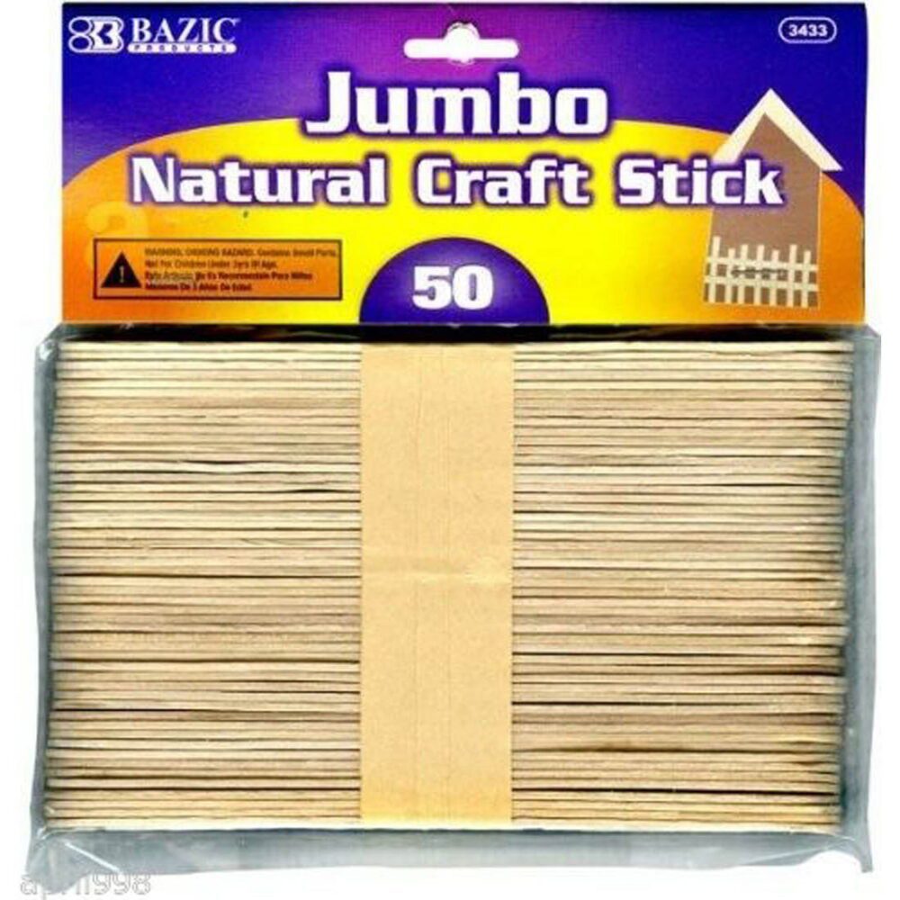 Description: Bazic Craft Sticks Jumbo Natural 50pc- Craft sticks can be painted or colored and easily glued.