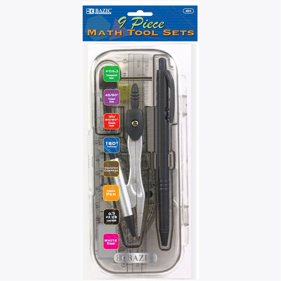 BAZIC Math Tool Sets, 9 Pieces