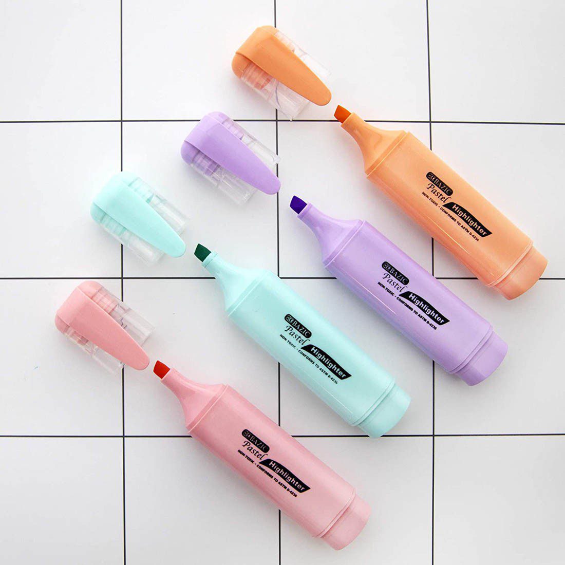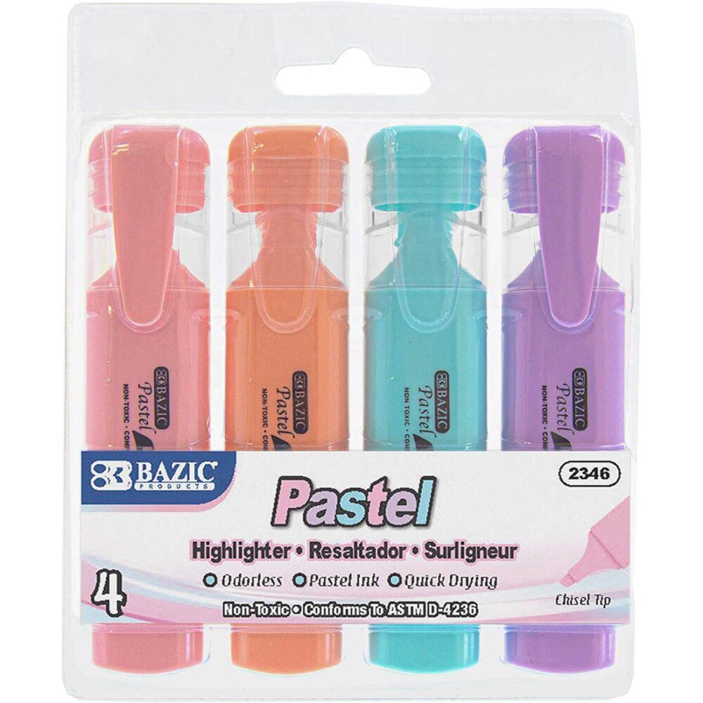 BAZIC Pastel Highlighters w/ Pocket Clip