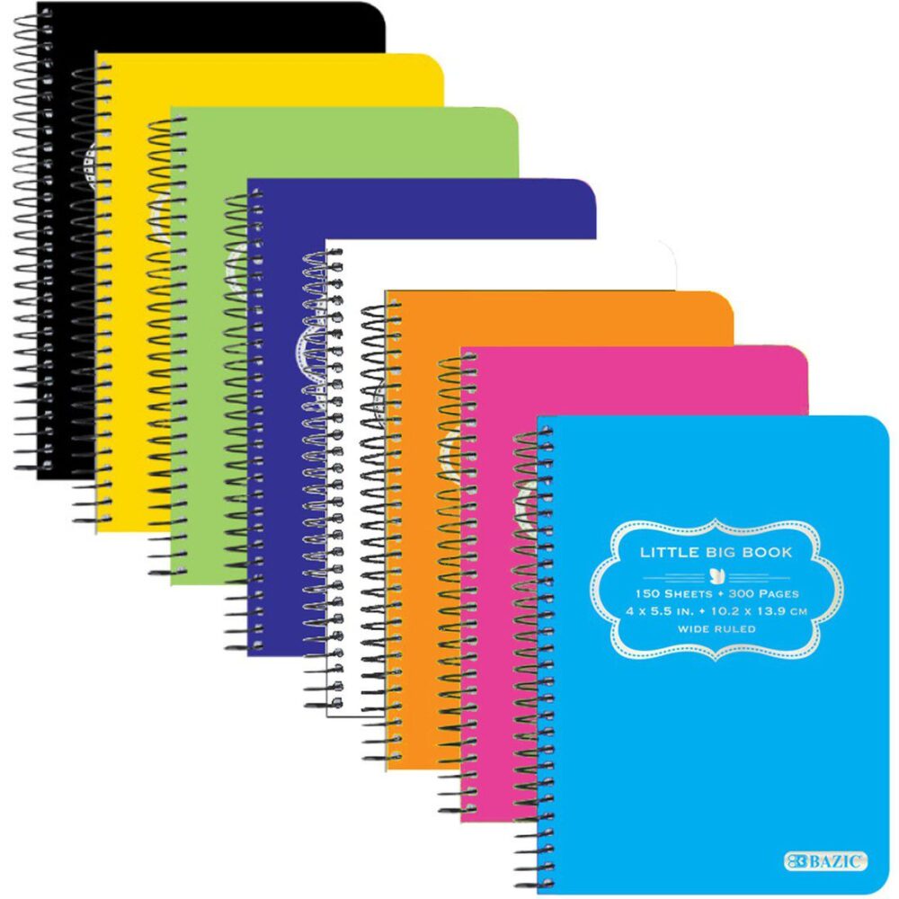 Wide ruled, spiral bound, with 150 sheets of micro perforated paper.