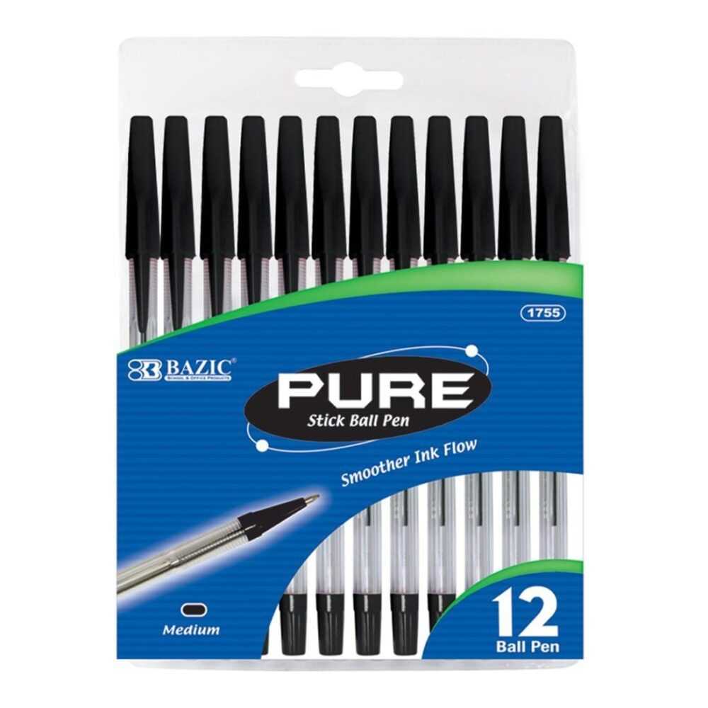 BAZIC Pure Black Stick Pen – 12 Per Pack