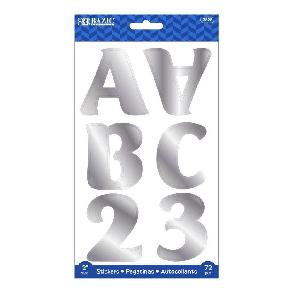 BAZIC Silver Metallic Color Alphabet & Numbers Stickers