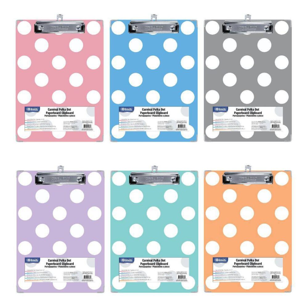 BAZIC Standard Size Carnival Polka Dot Paperboard Clipboard with Low Profile Clip