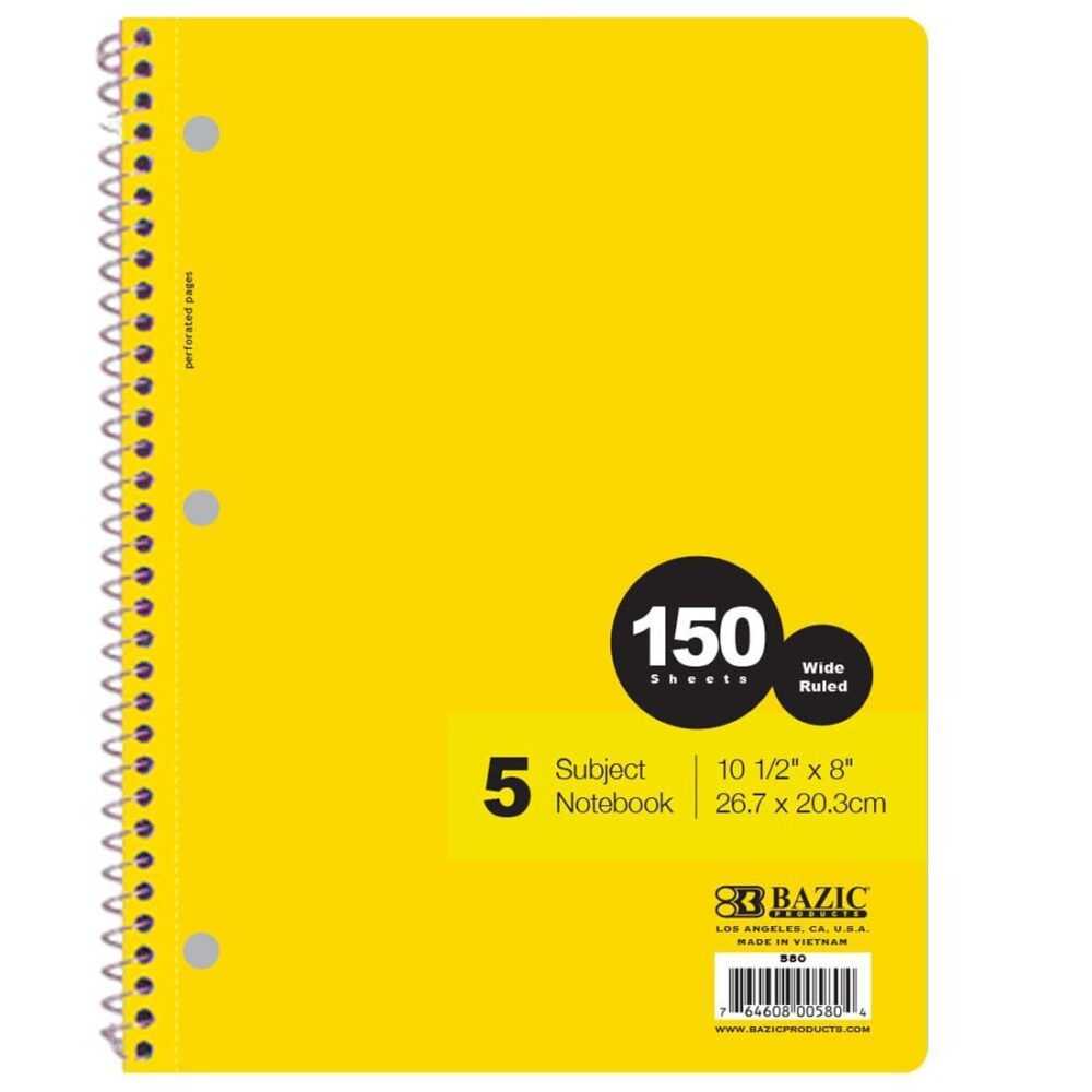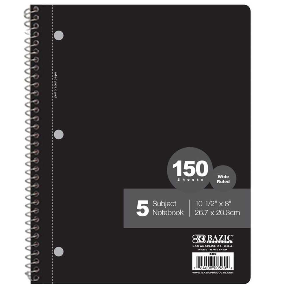 BAZIC Wide Ruled 5 Subject Notebook