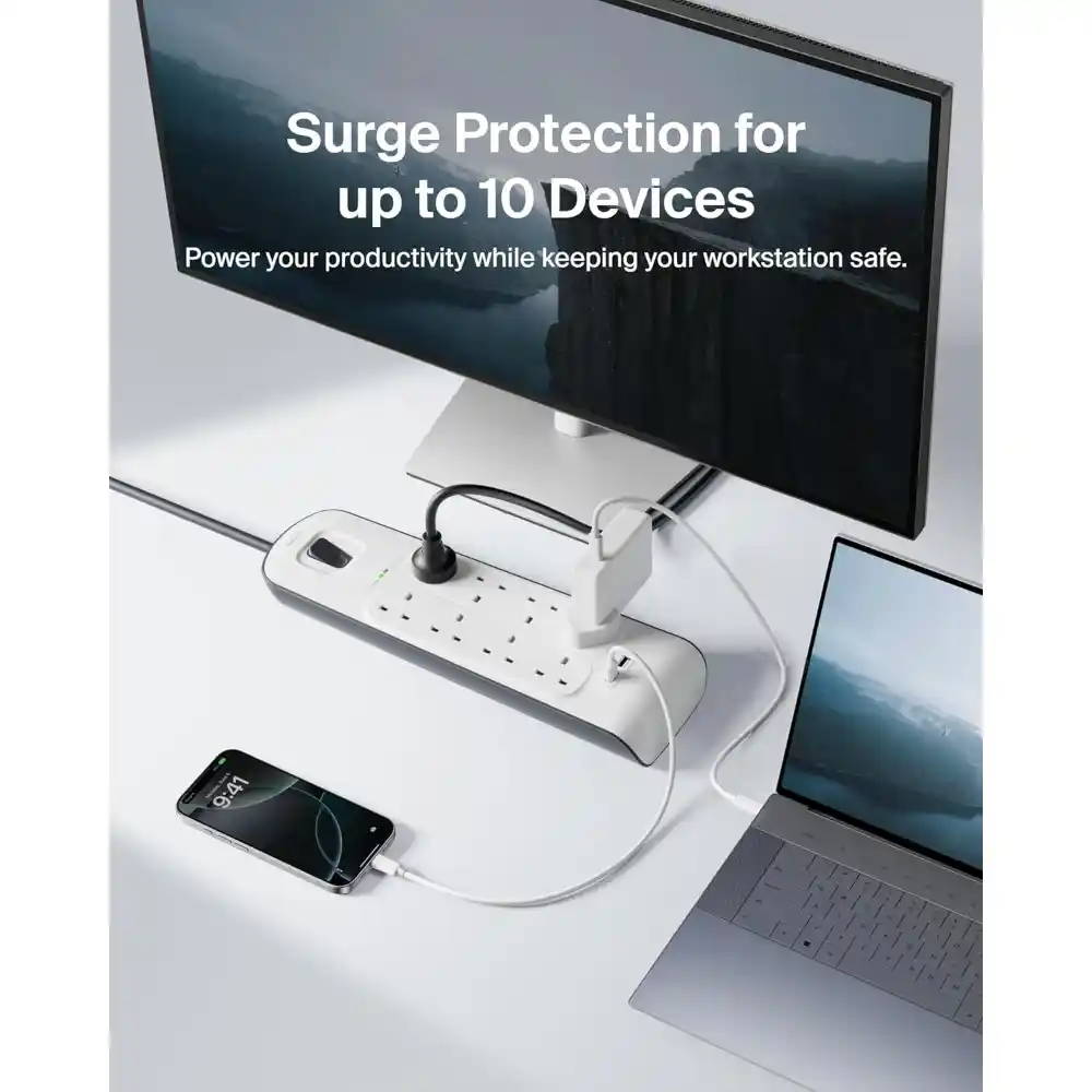 Providing reliable surge protection for your electrical devices, this unit features eight AC sockets and two USB ports, making it an ideal central power hub for your home. A 2-meter heavy-duty power cable offers flexible placement, while up to 900 joules of surge protection helps keep your devices safe.