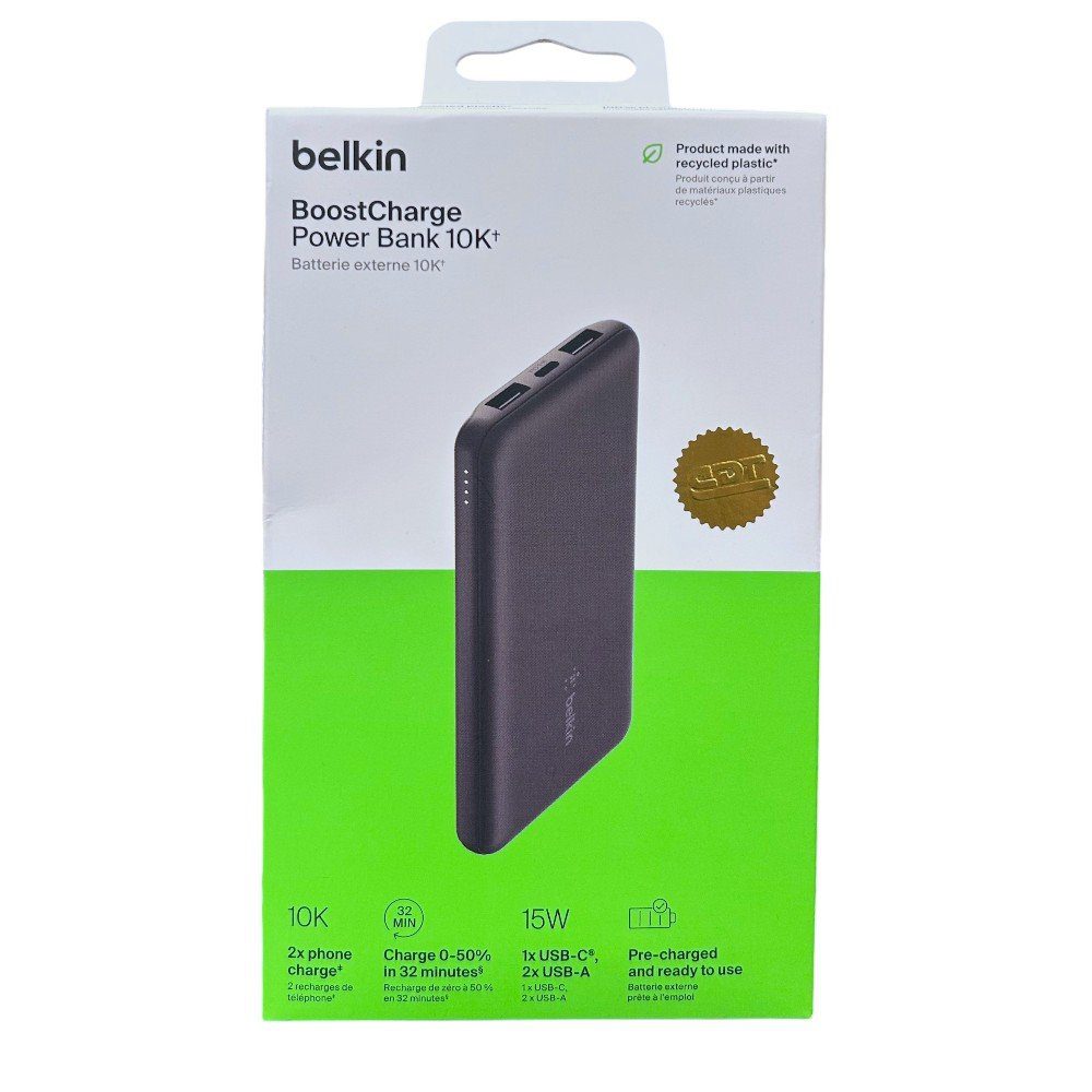 Keep your devices powered on the go with 10,000mAh of battery—offering up to 40 hours of extra power for your smartphone.Features 2 USB-A ports and 1 USB-C port to charge three devices at once.