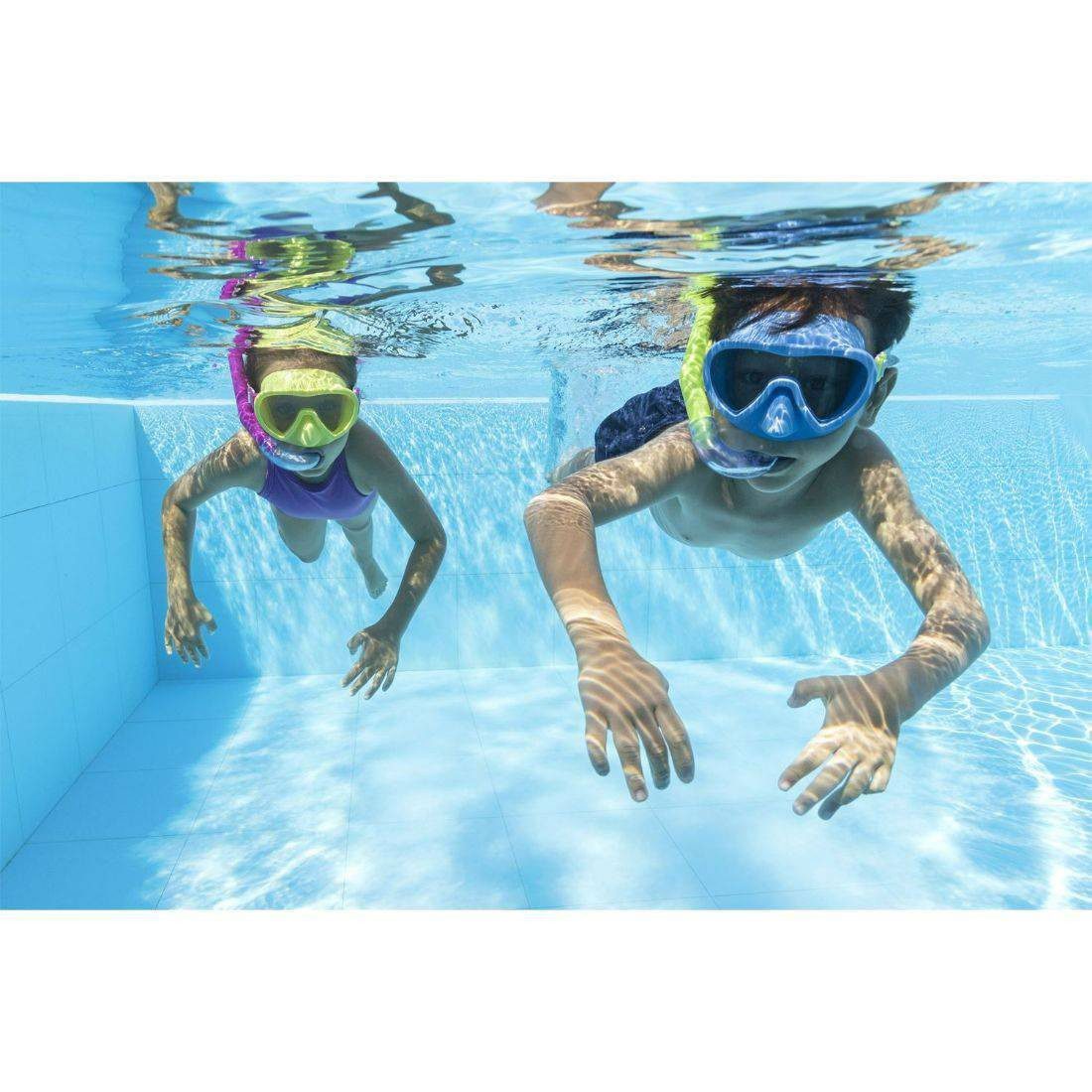 The Bestway Crusader Essential snorkel set is ideal for little enthusiastic swimmers from the age of 3 and is the perfect companion both in the pool and in the sea. Impact-resistant polycarbonate lenses with UV protection: The lens of the Crusader Essential was made of robust polycarbonate, which easily withstands the stresses of diving. Thanks to the special UV protective coating, your child’s eyes are additionally protected from the sun’s harmful rays. COMFORTABLE FIT: The comfortable edge seal ensures a secure and comfortable fit on your child’s face without letting water in. With a fully adjustable headgear, the size of the mask can be adjusted at any time. The snorkel is equipped with a soft, comfortable mouthpiece.