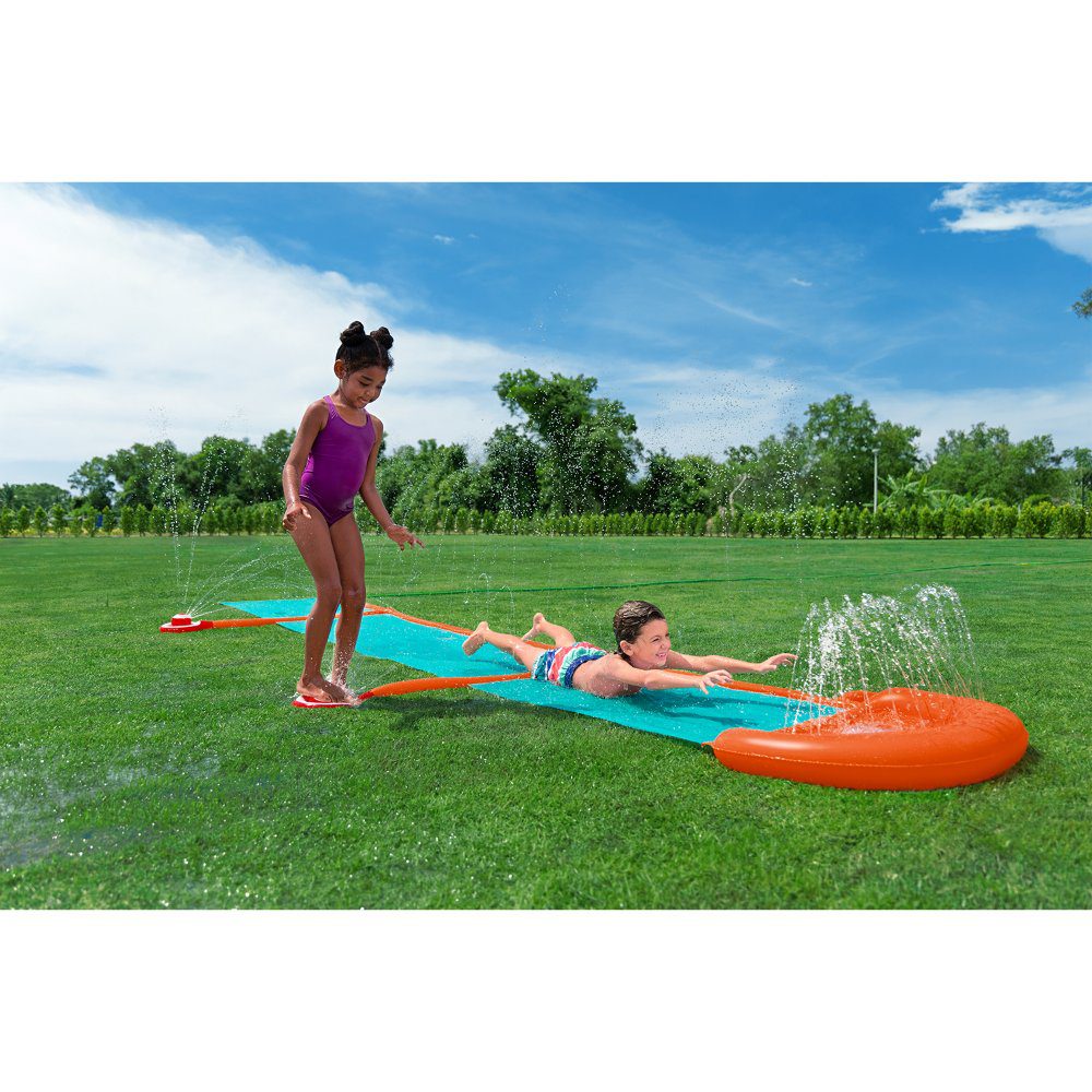The Bestway H2OGO! Water Slide Fountain offers exciting outdoor fun for kids during hot summer days. Measuring 488 x 129 cm, this long slide features a built-in fountain that sprays water along the length of the slide, ensuring a smooth, fast, and refreshing ride. It’s easy to set up and connects to a standard garden hose. Ideal for backyards, it provides a safe and fun way for kids to stay active and cool.