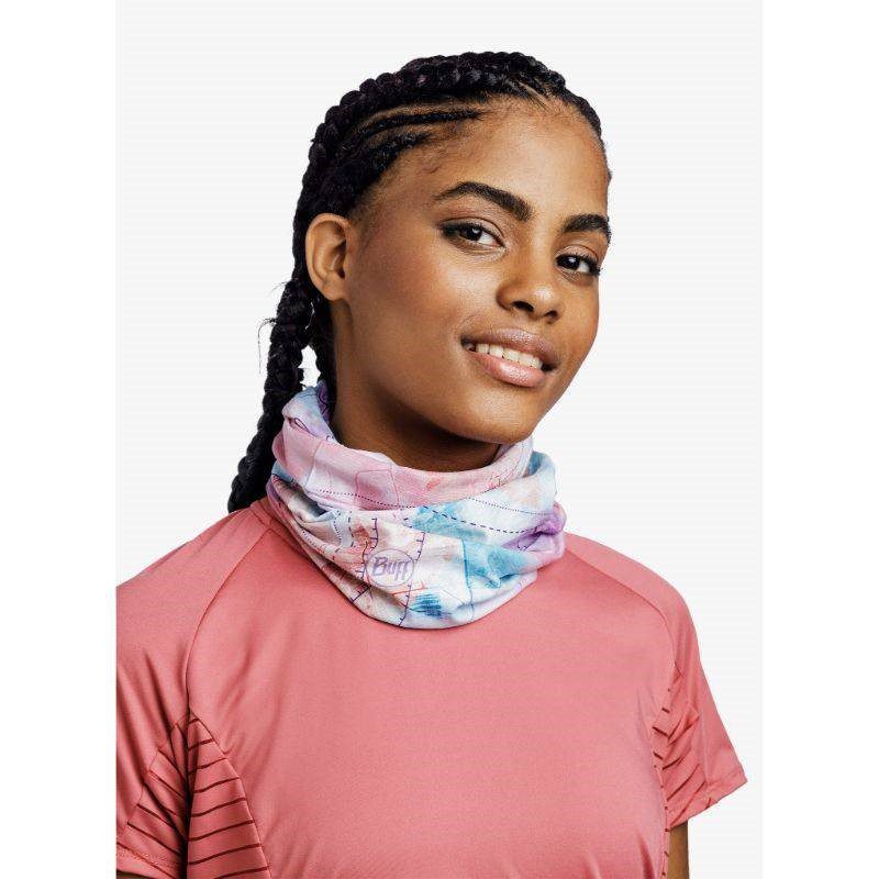 Recycled polyester and elastane were used to create the Buff Coolnet UV multifunctional scarf above. The fabrics are also supported by HeiQ Smart Temp technology, which is responsible for a particularly useful cooling effect during intense activities. The overall manages moisture very well and maintains the right microclimate around the skin.