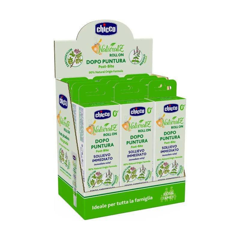 Chicco’s Natural After-Bite Protection Roll-on is a product specially formulated to soothe itching on baby’s delicate skin after an insect bite. Here are some features of this product:Usable from birth: The Roll-on can be used from the first days of the baby’s life, offering a safe and gentle solution to relieve itching caused by insect bites.Alcohol and ammonia free: The product formula is alcohol and ammonia free, making it gentle and suitable for baby’s sensitive skin.With menthol for cool relief: The Roll-on contains menthol, which offers a refreshing and soothing effect on the skin, helping to reduce the sensation of itching.Indicated to soothe itching: The product is specifically formulated to soothe itching caused by insect bites, offering immediate relief to the child.With zanthoxylum extract: The Roll-on contains zanthoxylum extract, which is known for its soothing and calming properties on irritated skin.Chicco’s Natural After-Bite Protection Roll-on is a practical way to deal with the discomfort of insect bites on your child, offering quick and gentle relief. Its safe and specific formulation for sensitive skin makes it an ideal choice for mothers who want to relieve itching and soothe the skin of their little ones.