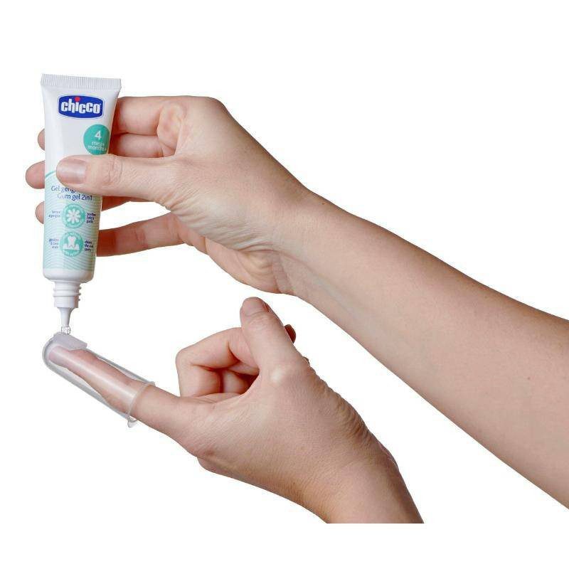 Thanks to the soft bristles it allows parents to gently clean and massage the baby’s red gums and first tooth. Made of soft silicone, fits perfectly on adult fingers.Suitable for soothing the discomfort associated with the growth of the baby’s first tooth. It is safe to swallow and tasteless,SANITIZING ACTION – with xylitol, cleanses and sanitizes the oral mucosa. SOOTHING AND REFRESHING ACTION: chamomile gives relief to irritated gums,the practical case supplied is useful for storing the teether after use, ensuring correct hygiene.