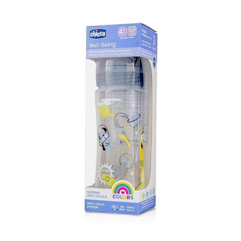 Chicco Well Being Bottle Anti-Colic System Fast Flow 330Ml 4M+ Dog