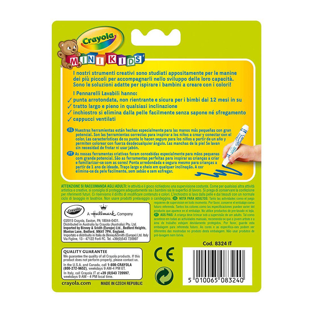 Crayola Set of 8 first markers Ink rinses off without soap, no scrubbing needed.