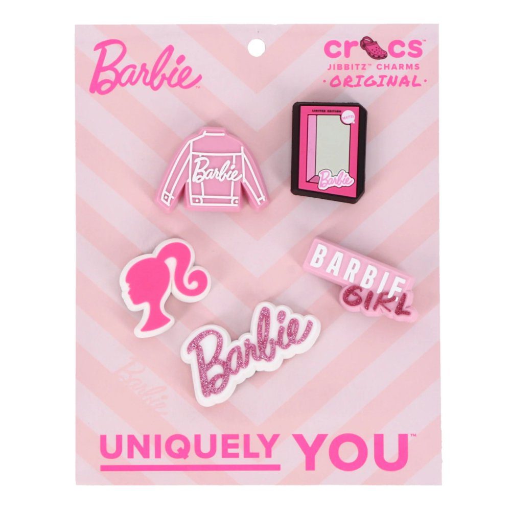 Pop some personality into your shoes with these Barbie 5 Pack Jibbitz charms. They?re the perfect addition to your favorite pairs of clogs, slides, and more.Not a toy. Not intended for children under 3 years of age.