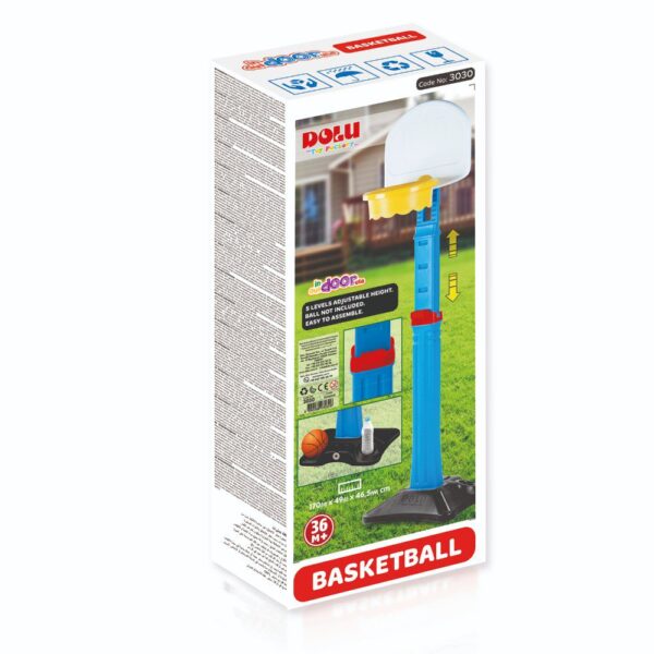 Make your first dunk! With this basketball pole from Dolu you will learn the basic techniques of playing basketball. Have you already scored a lot of points? Try upping the level by adjusting the height of the pole. Includes ball and water bottle holder. This outdoor toy encourages enjoyment of sports activities and children’s physical development.