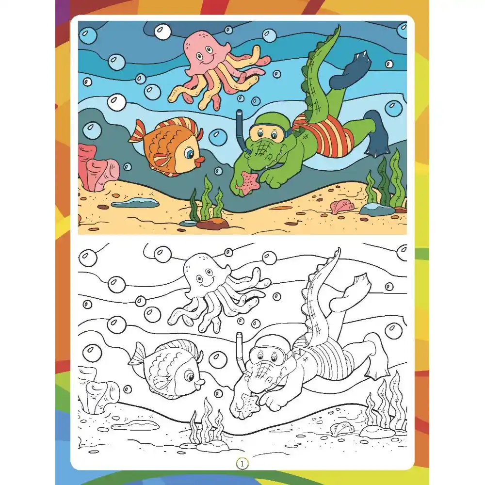 Super Colouring Book is a delightful source of fun for children, allowing them to use crayons or watercolors to bring the charming and playful illustrations to life.