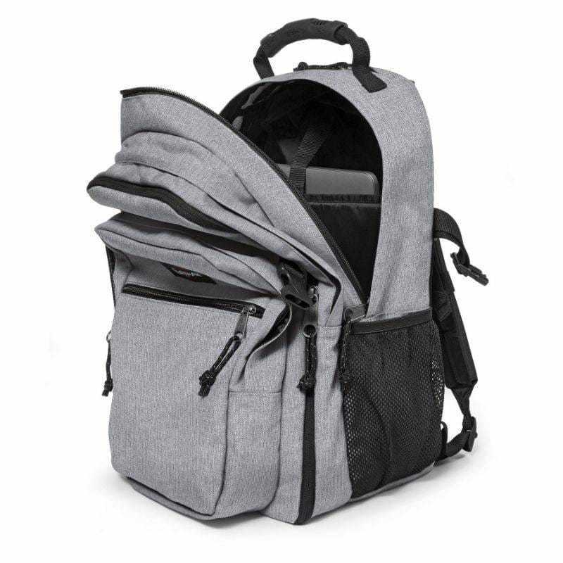 An extra large backpack in Sunday Grey, designed to keep you on track with internal organiser and top accessory pocket.Two main compartments, with an extra large front pocket.Padded tech sleeve for 15 inch laptops, and a side zip for easy access,Great for days when you pack lots, with a padded bottom and rubber handle.