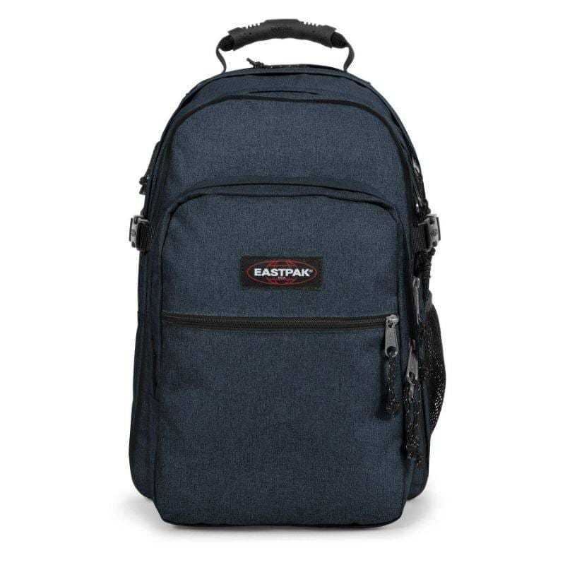 A practical backpack for the busy in Triple Denim: carry everything you need with the ergonomic construction,Two main compartments, with multiple zip pockets and organiser,Side access padded laptop sleeve for up to 15 inch laptops,Rubber bottom for books, with sternum strap for safe carrying,100% vegan