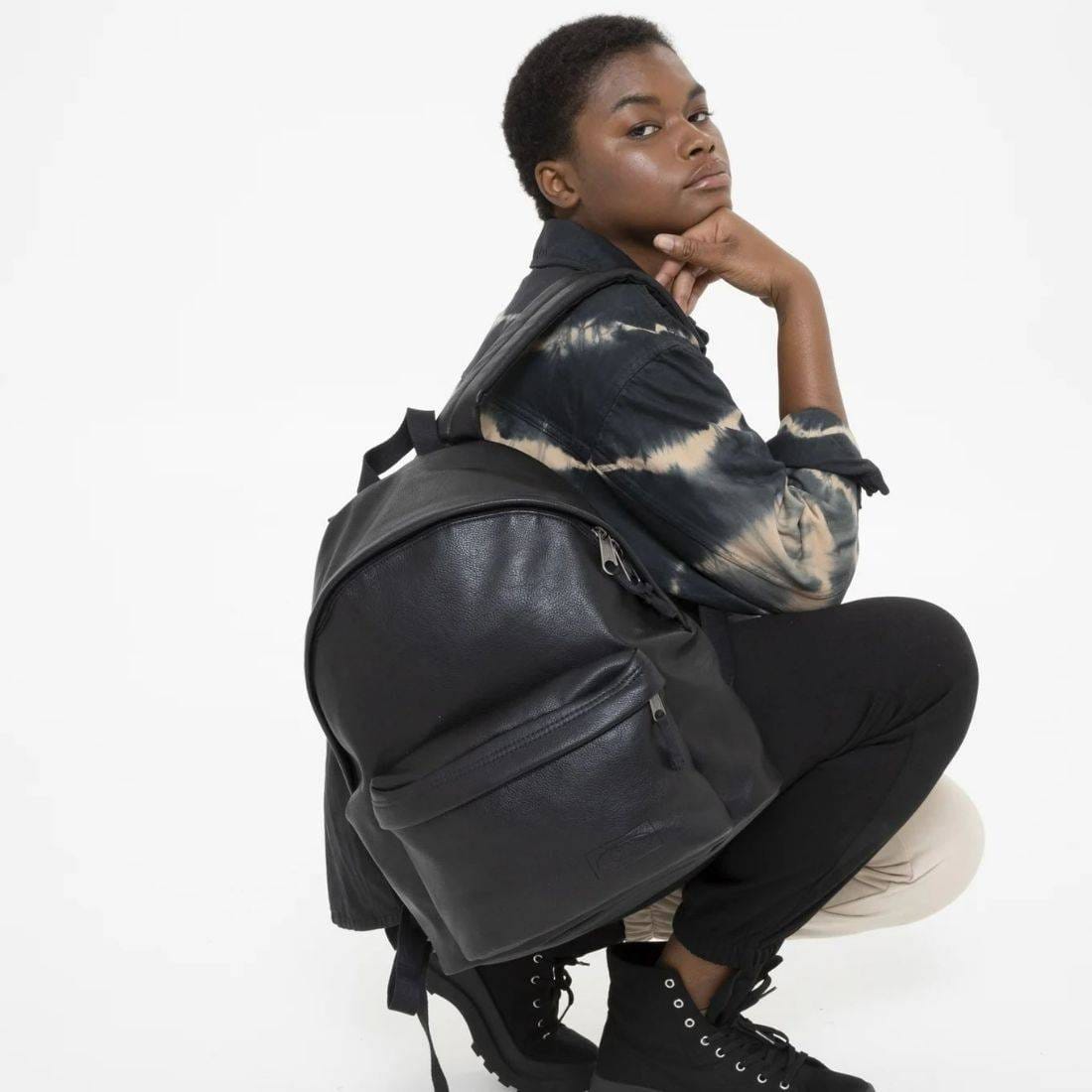 In our Grained Black shade, Main compartment with front zip pocket, Composition: 100% PU, Padded back panel and adjustable shoulder straps, Padded laptop and bulk pocket of 13-inch devices, No animal products have been used to make this completely vegan item.