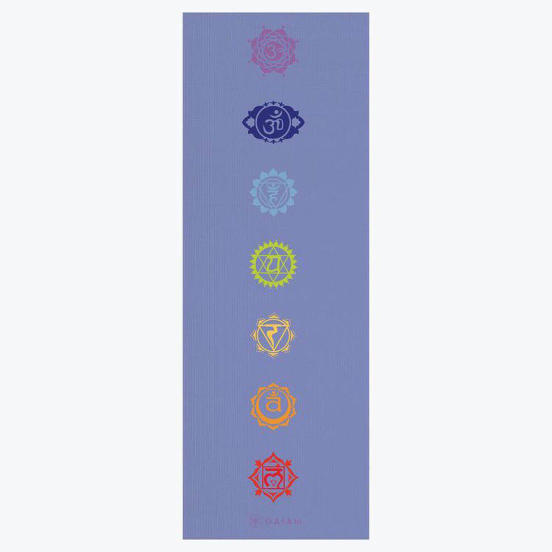 Feel grounded in your space when youre reminded of the bodys seven chakras or energy centers that run from the base of your spine to the crown of your head. This durable, lightweight, and light-tack mat is perfect for the home or transporting to the studio. Manufactured free of the top six most harmful phthalates, this mat is a healthy choice for both you and the planet.