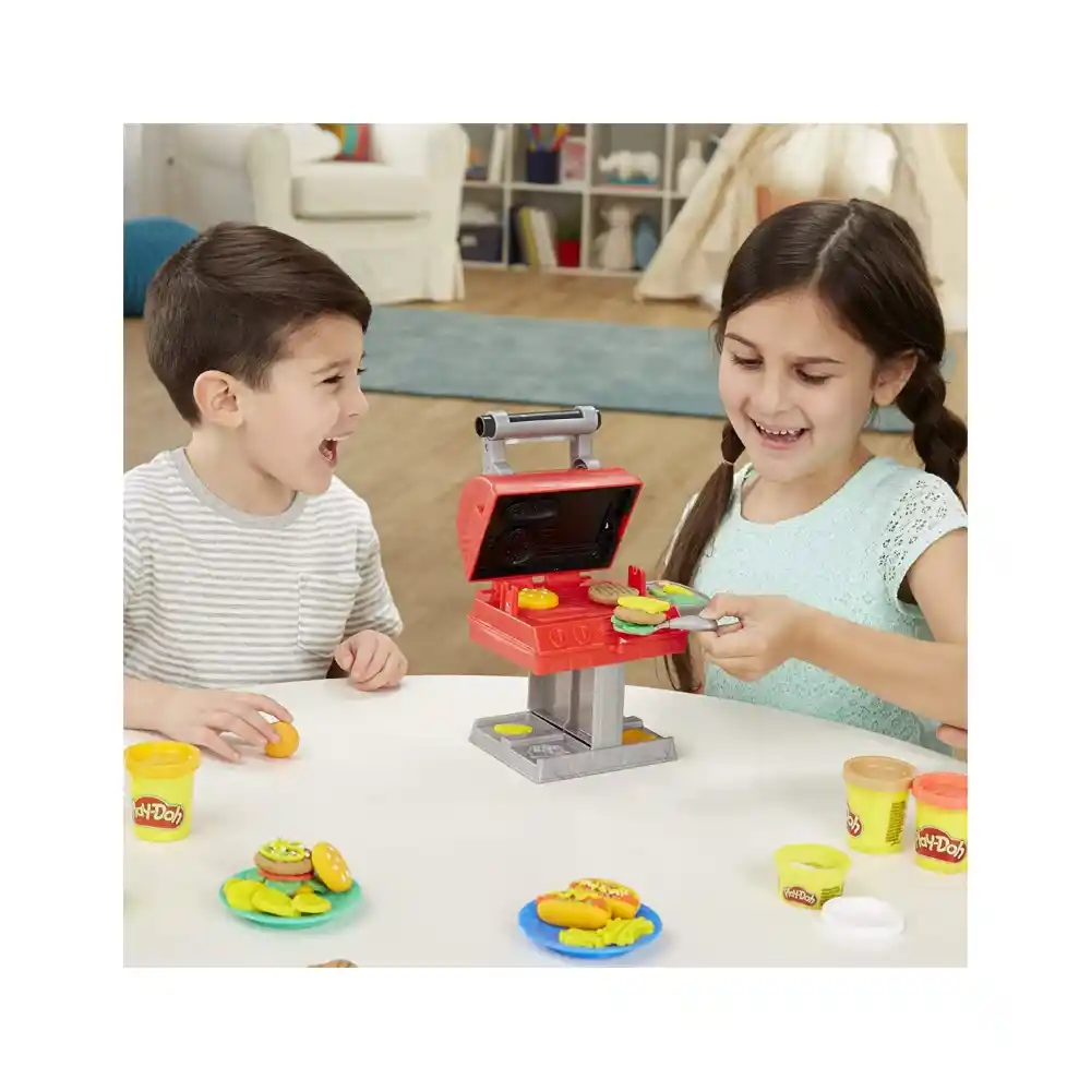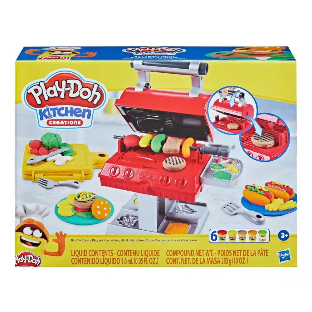 Bring the fun of a family cookout to your play space with the Play-Doh Grill Set! Kids can create burgers, hot dogs, and pretend chicken wings using the included molds on the grill and cutting board. Place their creations on the toy grill, close the cover, and the built-in inkpad stamps realistic “sear” marks—while the Play-Doh remains reusable for endless fun. Little chefs can also make pretend kabobs with the skewer and add a variety of toppings. With six Play-Doh colors in 1- and 2-ounce cans, this set has everything needed for imaginative cooking play. Perfect for kids ages 3 and up, it makes a fantastic birthday gift or surprise for young fans of modeling clay and cooking toys.