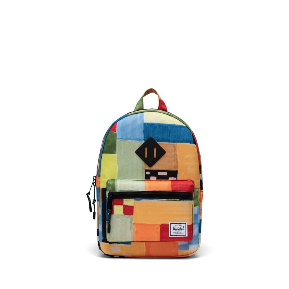 the durable Herschel Heritage Kids backpack is perfect for a trip to the playground.Signature striped liner, Zippered main compartment with Prusik cord pulls, Removable sternum support strap, Front pocket, Rubber diamond, Internal name label.