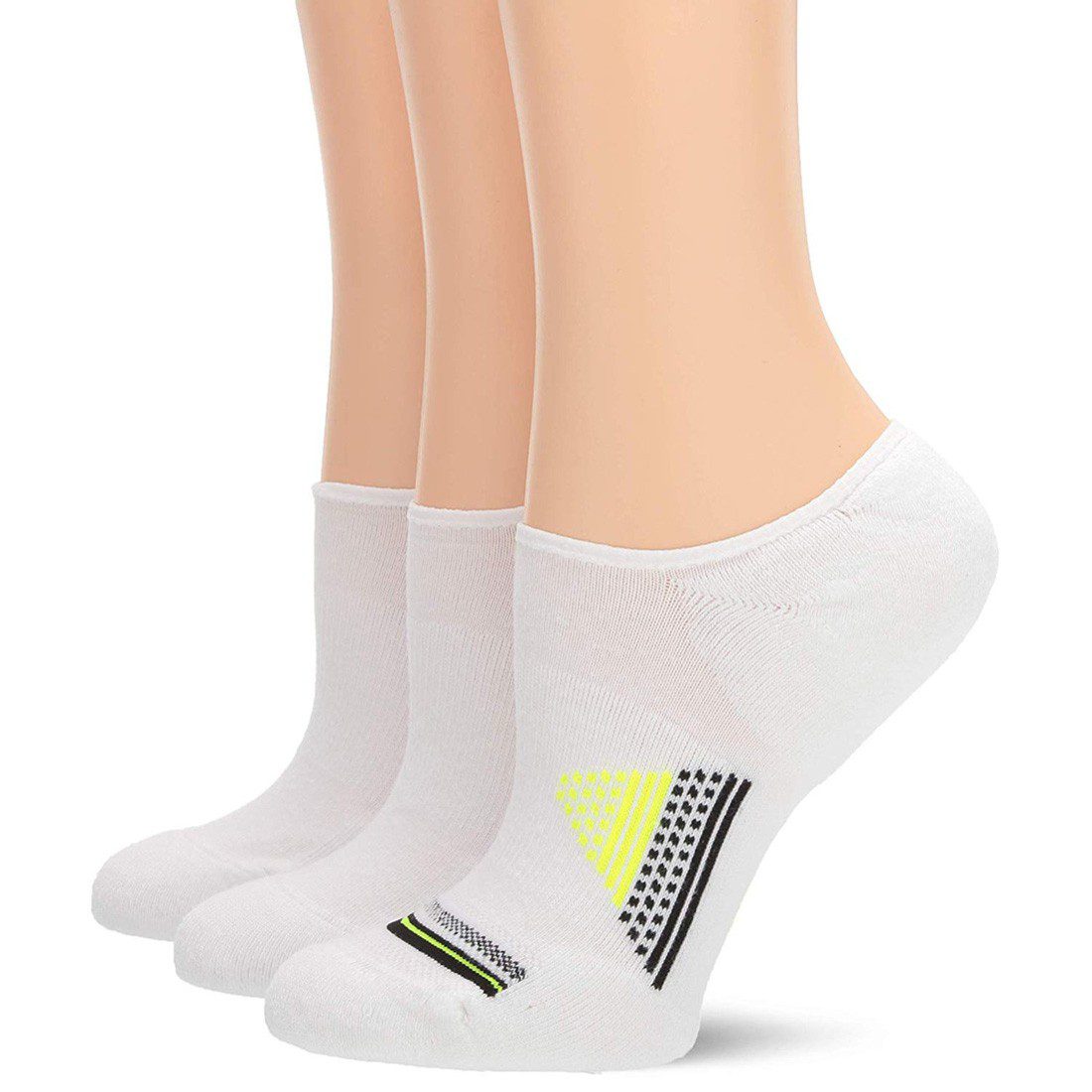 Hue Women Low Cut No Show Liner Sport Socks with Cushion 3 Pair Pack White Neon