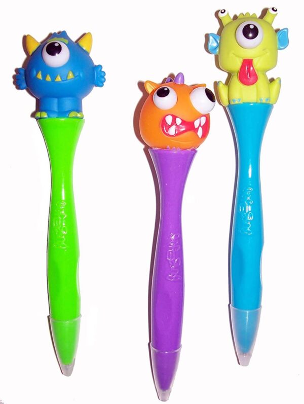 6 piece set – 2 each of blue 1 eye monster, orange fang monster, green 1 eye tongue monster