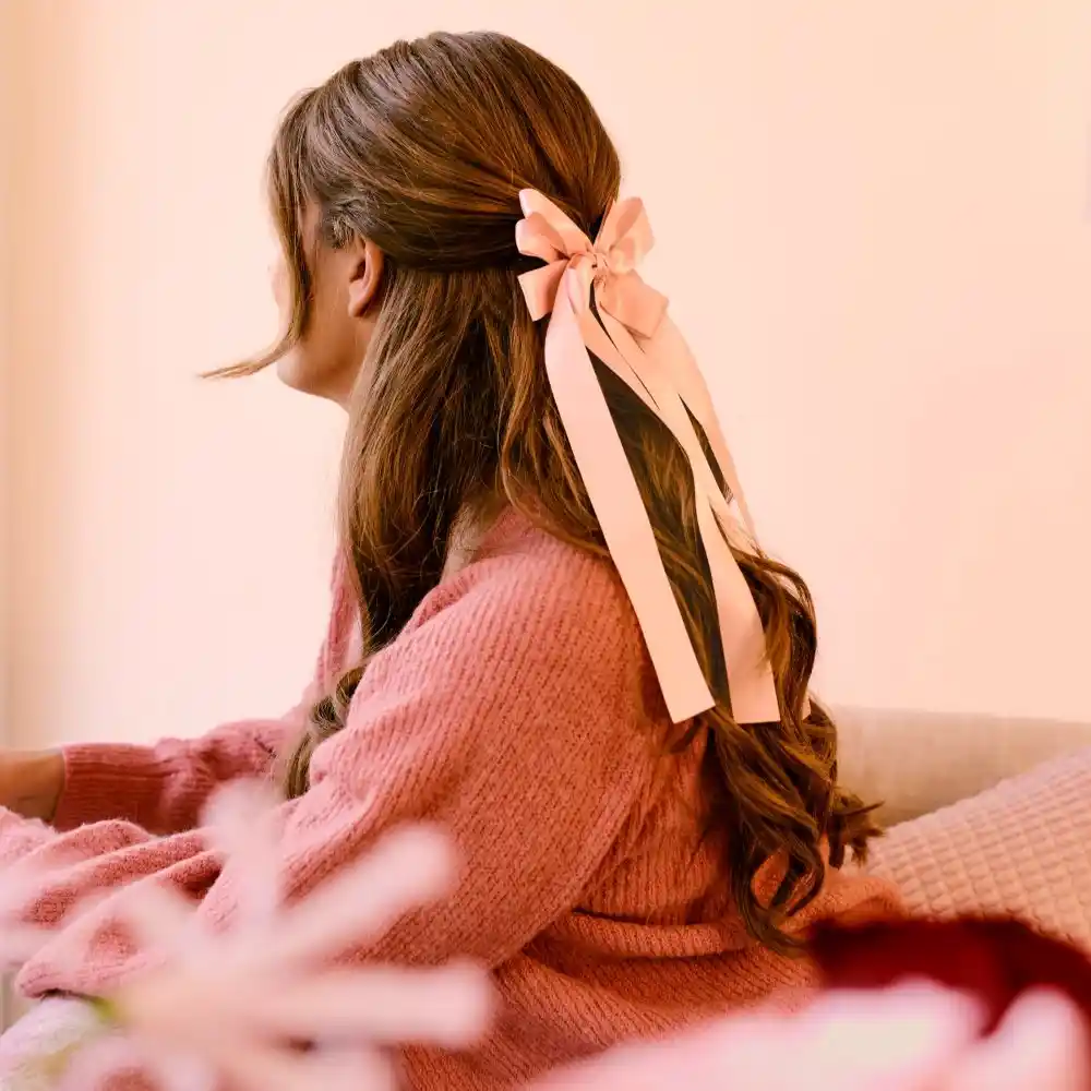 This soft pink ribbon clip adds a touch of girly glam to any hairstyle, perfect for anyone who loves chic, playful looks. The easy-to-use clip design lets you create flirty, fashionable styles in seconds, adding a sparkling finishing touch to both everyday outfits and special occasions.