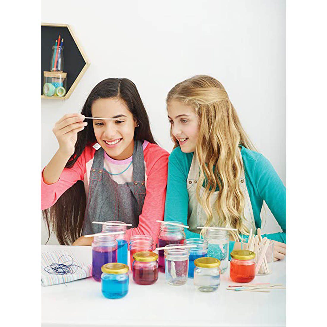 Explore the science of gems and minerals while crafting 7 dazzling, crystal projects in your choice of colors. With this kit, a stylish scientist can make 3 pendant necklaces, 2 statement rings, a pair of earrings and a decorative colossal crystal. Crystal-clear instructions and fun facts about crystal chemistry spark creativity every step of the way.