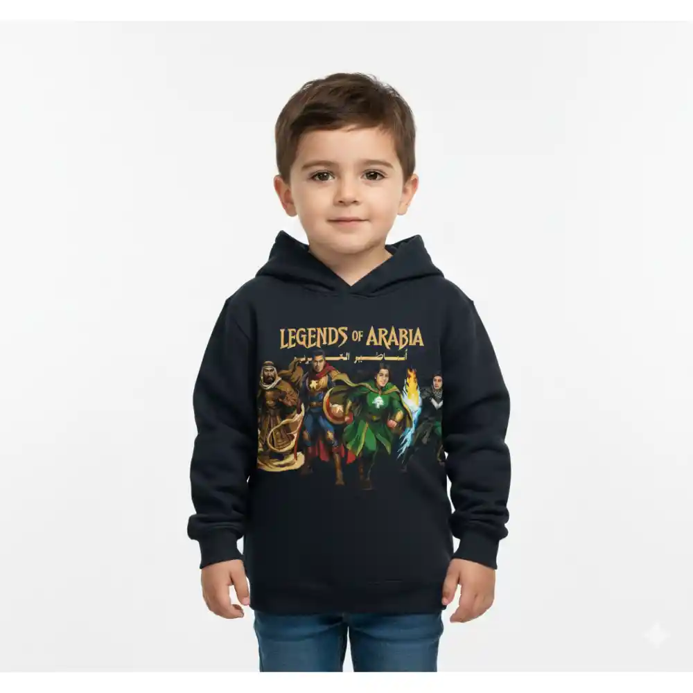 Let your child step into the world of Legends of Arabia with their two favorite heroes — Captain Jordan and Sand Man. This exclusive hoodie brings the iconic duo to life with bold, vibrant artwork on a cozy, comfortable fit. Perfect for school, playdates, and everyday adventures, it lets kids wear their heroes with pride.