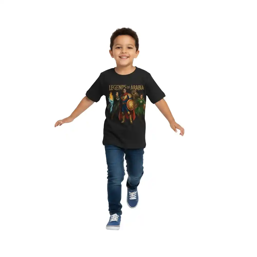 Let your child join the Legends of Arabia on every adventure. This full-character T-shirt features Captain Jordan, Cedar of Lebanon, Falasteen, and Sand Man in vibrant color on soft, breathable fabric kids love. Perfect for school, playtime, and weekend outings, it brings the magic of our superhero universe into everyday life.