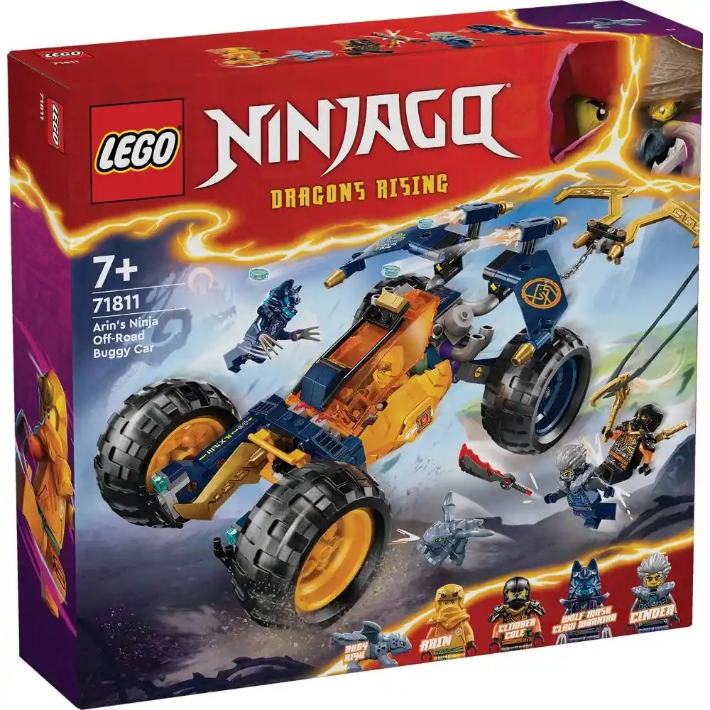 Boys and girls aged 7 and up can relive thrilling battles from season 2 of the NINJAGO Dragons Rising TV show with LEGO NINJAGO Arin’s Ninja Off-Road Buggy Car (71811). This action-packed set features Arin’s yellow vehicle with moving wheels, suspension, an opening cockpit for 2 minifigures, 2 stud shooters, and a large rear hook for catching villains.The set also includes a Baby Riyu model and 4 NINJAGO minifigures: Climber Cole with climbing hook and katana sword accessories, Arin with climbing hook and katana sword accessories, a Wolf Mask Claw Warrior with claws, and Cinder with a sword accessory, offering endless role-play possibilities.