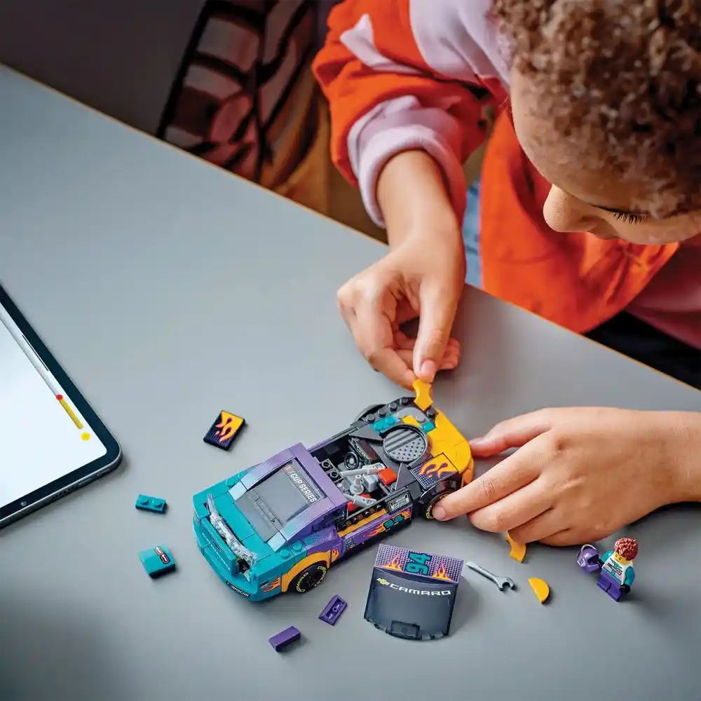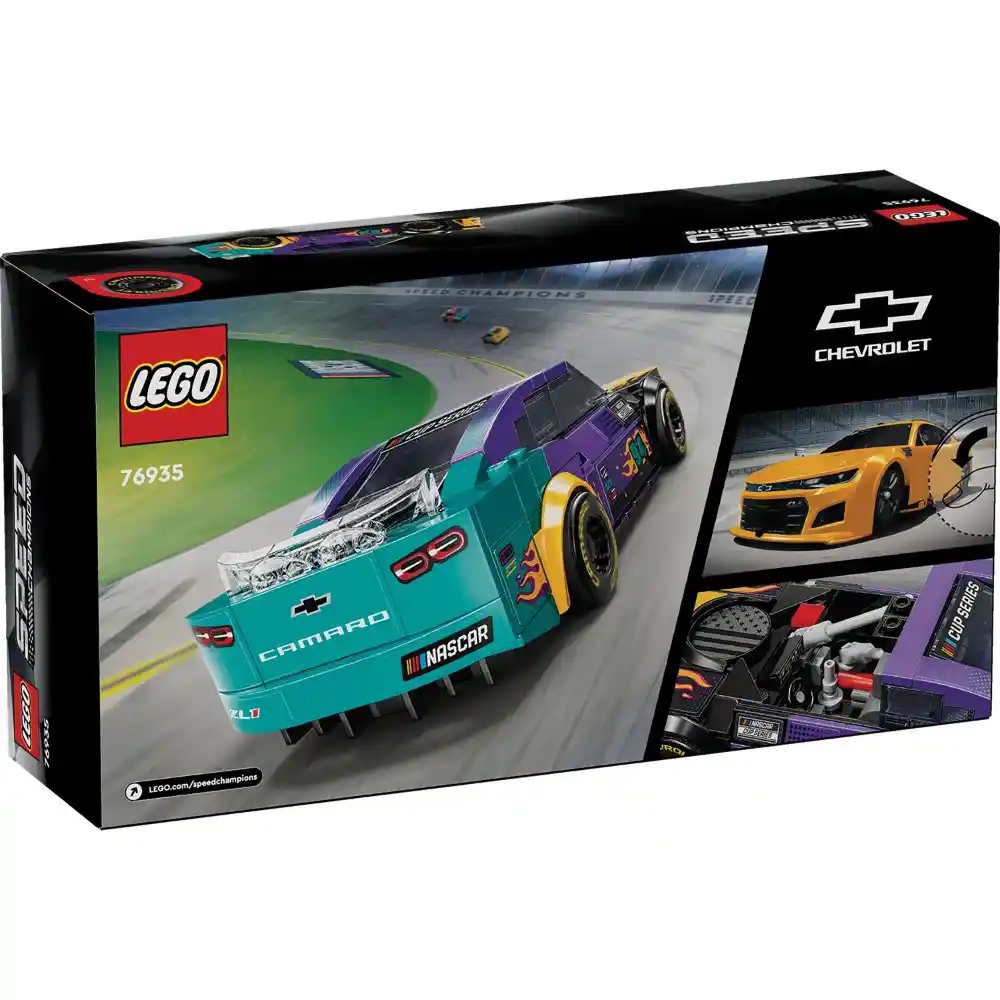 The LEGO Speed Champions NASCAR Next Gen Chevrolet Camaro ZL1 set includes 328 pieces, allowing kids to build a detailed replica of the iconic race car. This collectible vehicle features authentic design elements and comes with a driver minifigure for added racing action.