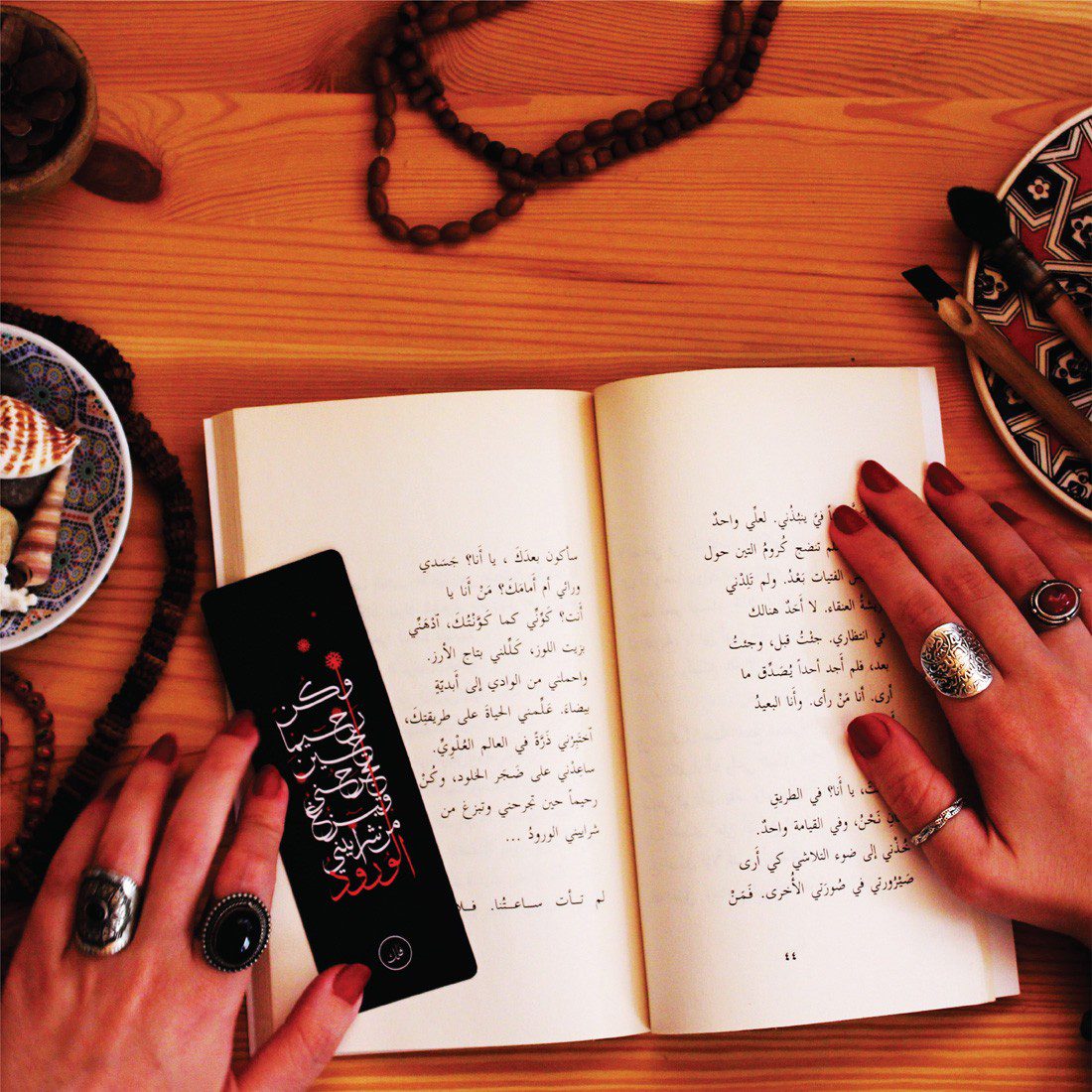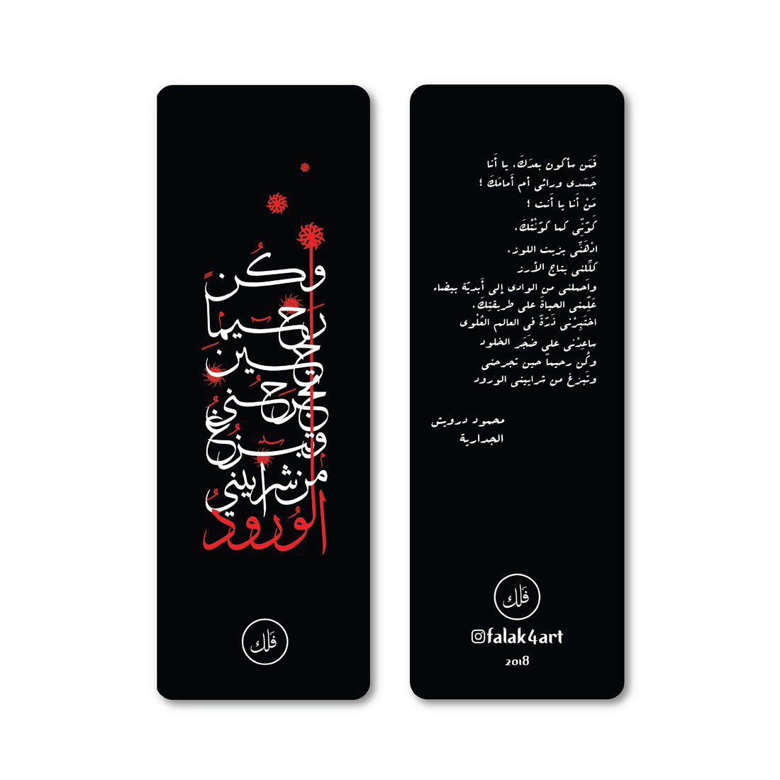 Black and red bookmark with Mahmoud Darwish poet.