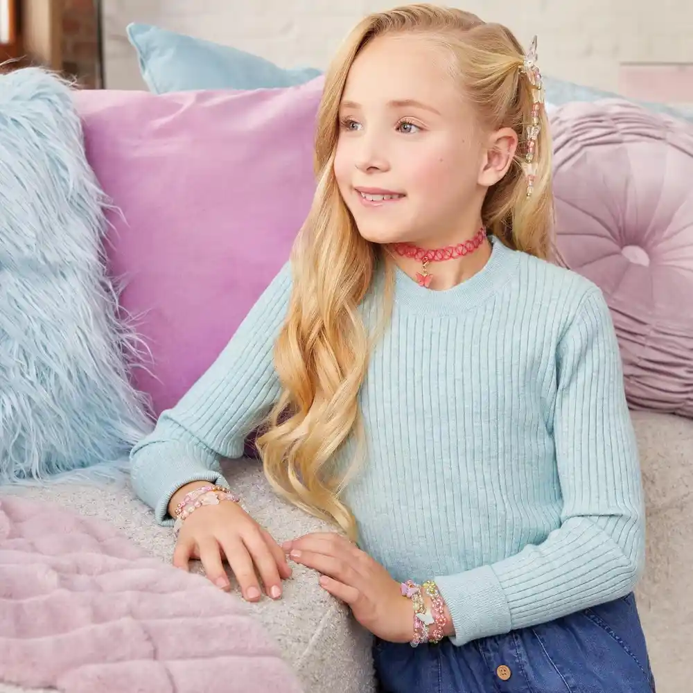 This DIY jewelry kit makes it easy for kids and tweens to create their own fashionable jewelry and hair accessories with fun butterfly charms. With simple, easy-to-follow instructions, young crafters can design 5 bracelets, 1 trendy elastic necklace, and a beaded hair clip using a colorful assortment of beads and charms—all included in the kit.