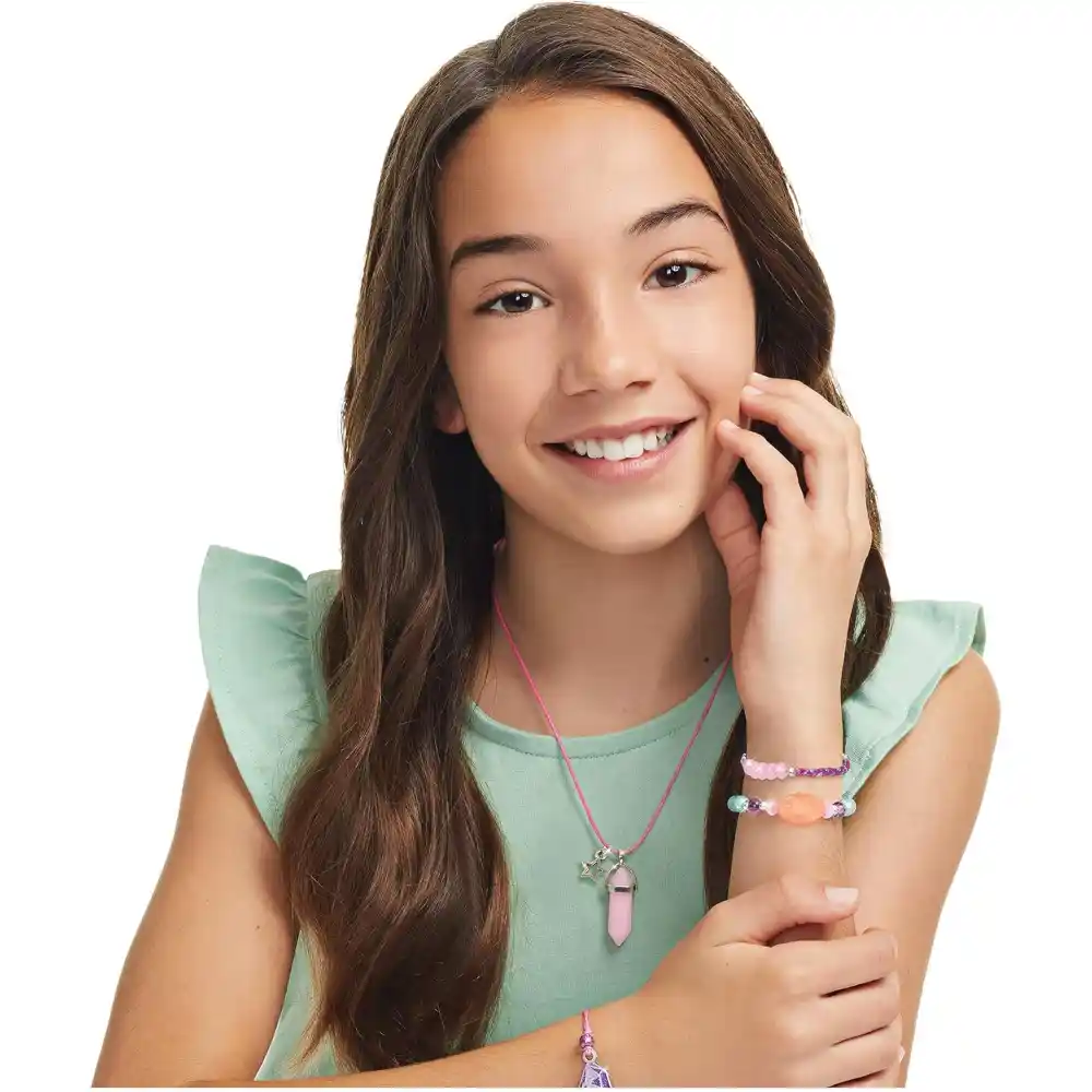 The Make It Real Positive Gems Jewelry Kit is a creative arts and crafts set designed to inspire imagination, self-expression, and fine motor skill development in kids aged 8 and up.