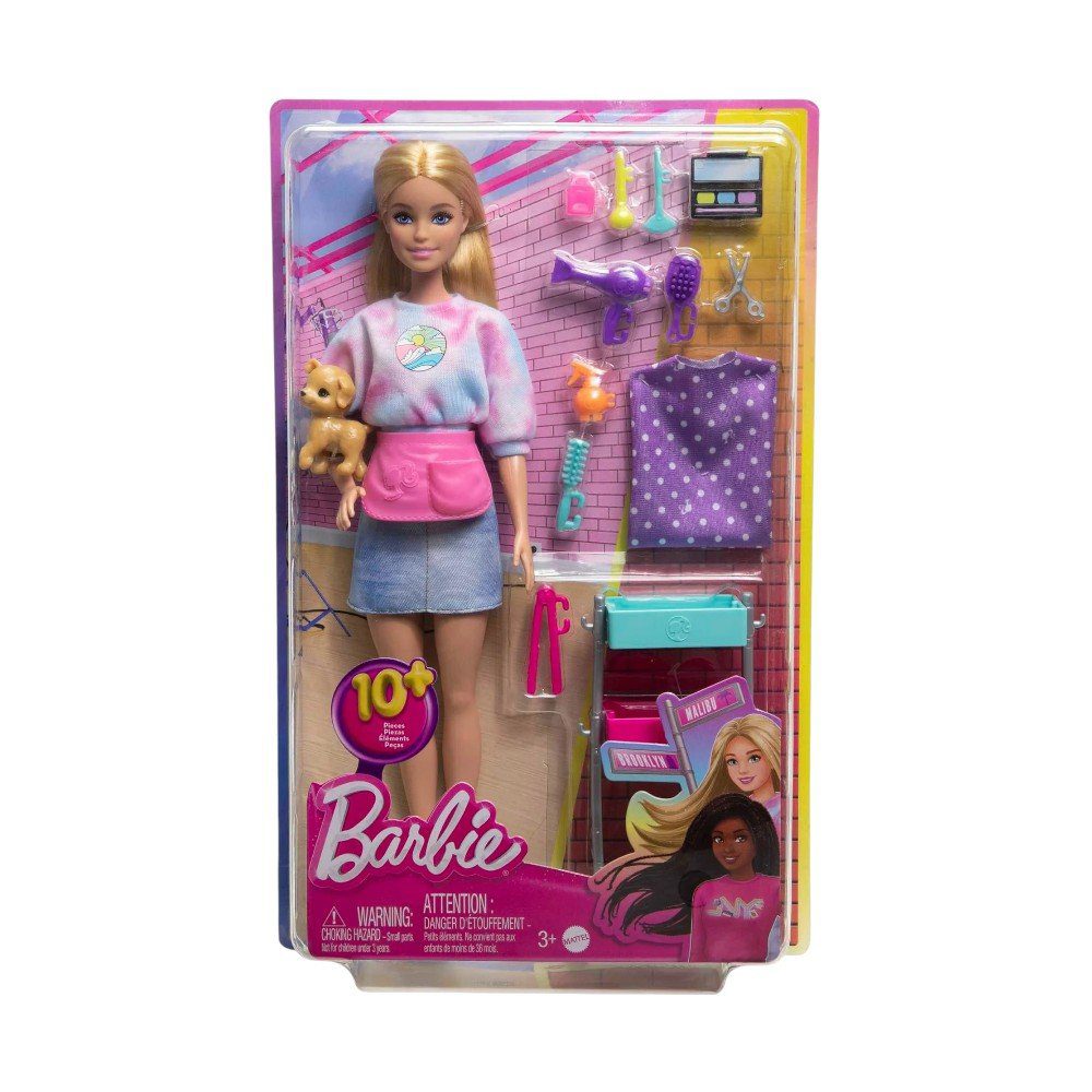 Bring the excitement of a movie set to playtime with the Barbie On Set Stylist Playset! Barbie ‘Malibu’ takes center stage as a stylist, complete with 14 themed accessories including a puppy, stylist cart, smock, hair dryer, brush, and makeup palette.Kids can create their own stories, style Barbie’s hair and makeup, and immerse themselves in a fun, imaginative world inspired by Barbie On Set.
