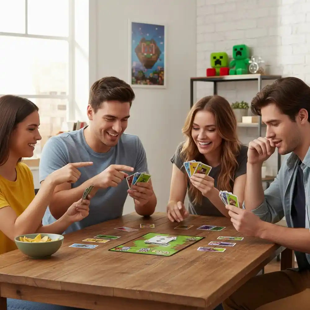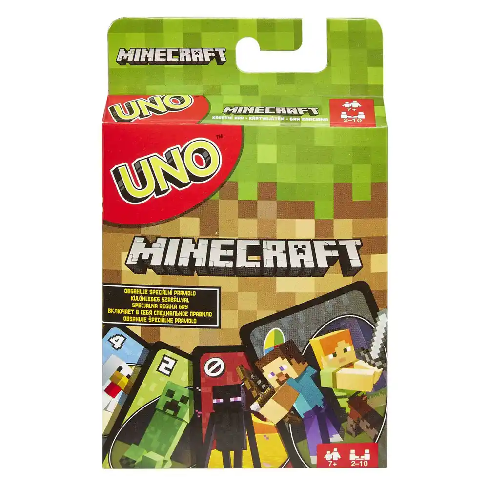 Just like the classic UNO you love, UNO Minecraft challenges players to race to get rid of all their cards — but with a fun Minecraft twist! This edition features cards with Minecraft characters and artwork, plus a special new rule.Match a card from your hand to the card on top of the discard pile and score points based on the cards left in your opponents’ hands. UNO Minecraft also introduces a unique action card: the Creeper card! When you draw it, show it to the other players — they must each draw three cards.The first player to reach 500 points wins. And when you’re down to one card, don’t forget to shout “UNO!”